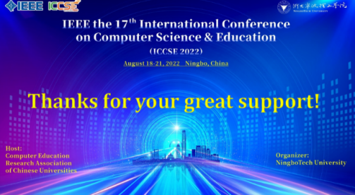 2022年8月18日-21日,第17届国际计算机科学与教育会议IEEEthe 17th International Conference on Computer Science & Education(简称IEEE ICCSE 2022)在宁波成功举办,来自中国、美国、澳大利亚、德国、意大利、泰国、印度和日本8个国家,183所高校的专家学者和师生嘉宾在线下主会场与线上腾讯会议共同参会进行学术交流。IEEE ICCSE 2022由全国高等学校计算机教育研究会(国家一级法人学会)主办,IEEE教育协会提供技术支持,开云kaiyun官网外国语学院、教育部国别和区域研究备案中心—开云kaiyun官网“波兰研究中心”、宁波市阳明文化创造性转化与传播基地承办。本届会议特别邀请了主办方全国高等学校计算机教育研究会理事长何炎祥教授,研究会原理事长王志英教授,研究会副理事长、IEEE ICCSE 2022荣誉主席李茂青教授;承办方开云kaiyun官网党委书记、IEEE ICCSE 2022荣誉主席胡征宇,开云kaiyun官网副校长鲁东明,以及主旨报告专家香港中文大学陈本美院士,清华大学胡事民教授和东南大学李世华教授。