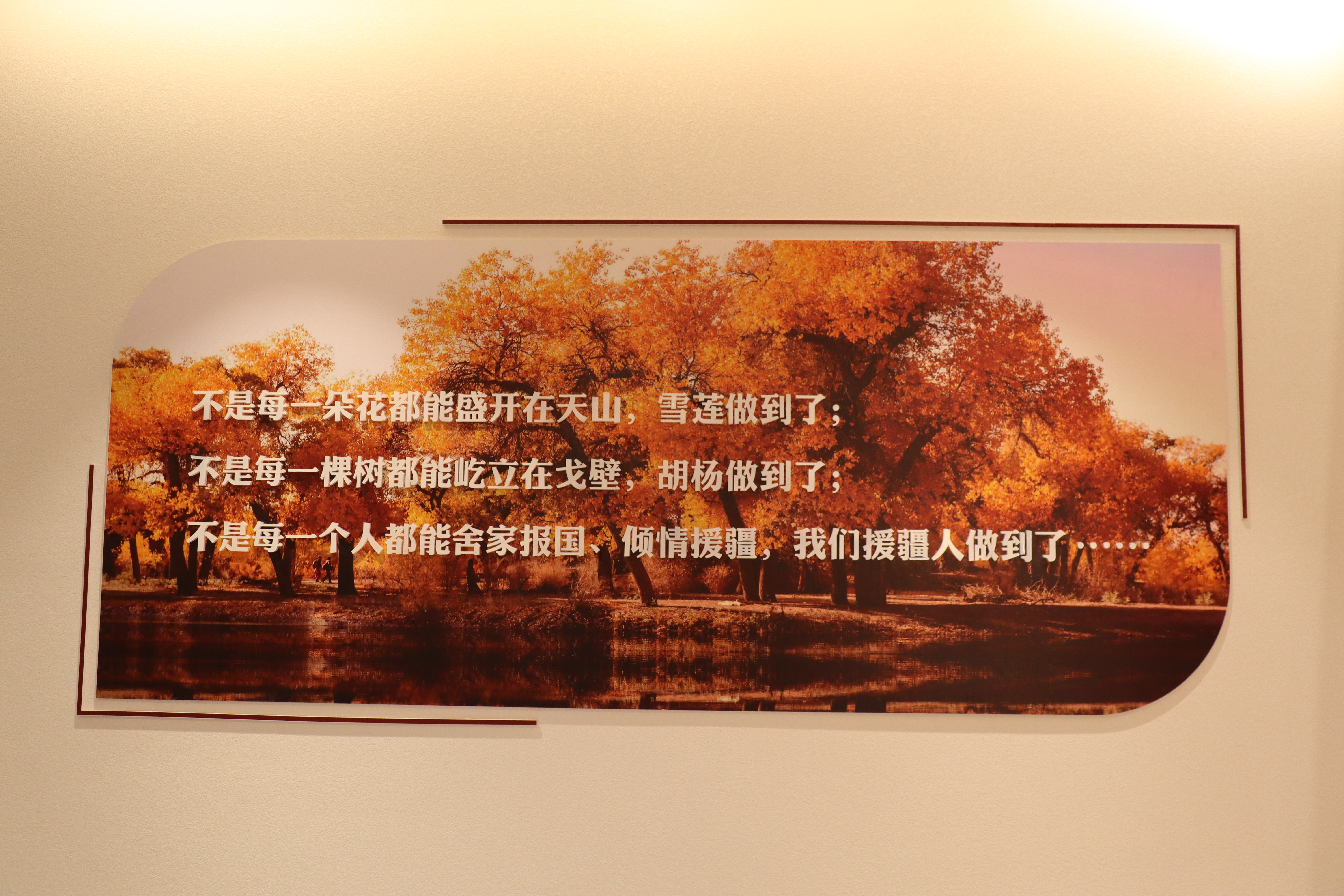 不是每一朵花都能盛开在天山,雪莲做到了;不是每一棵树都能屹立在戈壁,胡杨做到了;不是每一个人都能舍家报国,倾情援疆,援疆人做到了!东西协作,甬库心连心,永远在一起!实践团成员会牢记学校领导和援疆干部的教诲和期许,学习援疆干部的英模精神,发挥青春力量,将援疆精神宣传至更多的青年中,让青年看见援疆,引导青年到祖国最需要的地方建功立业!