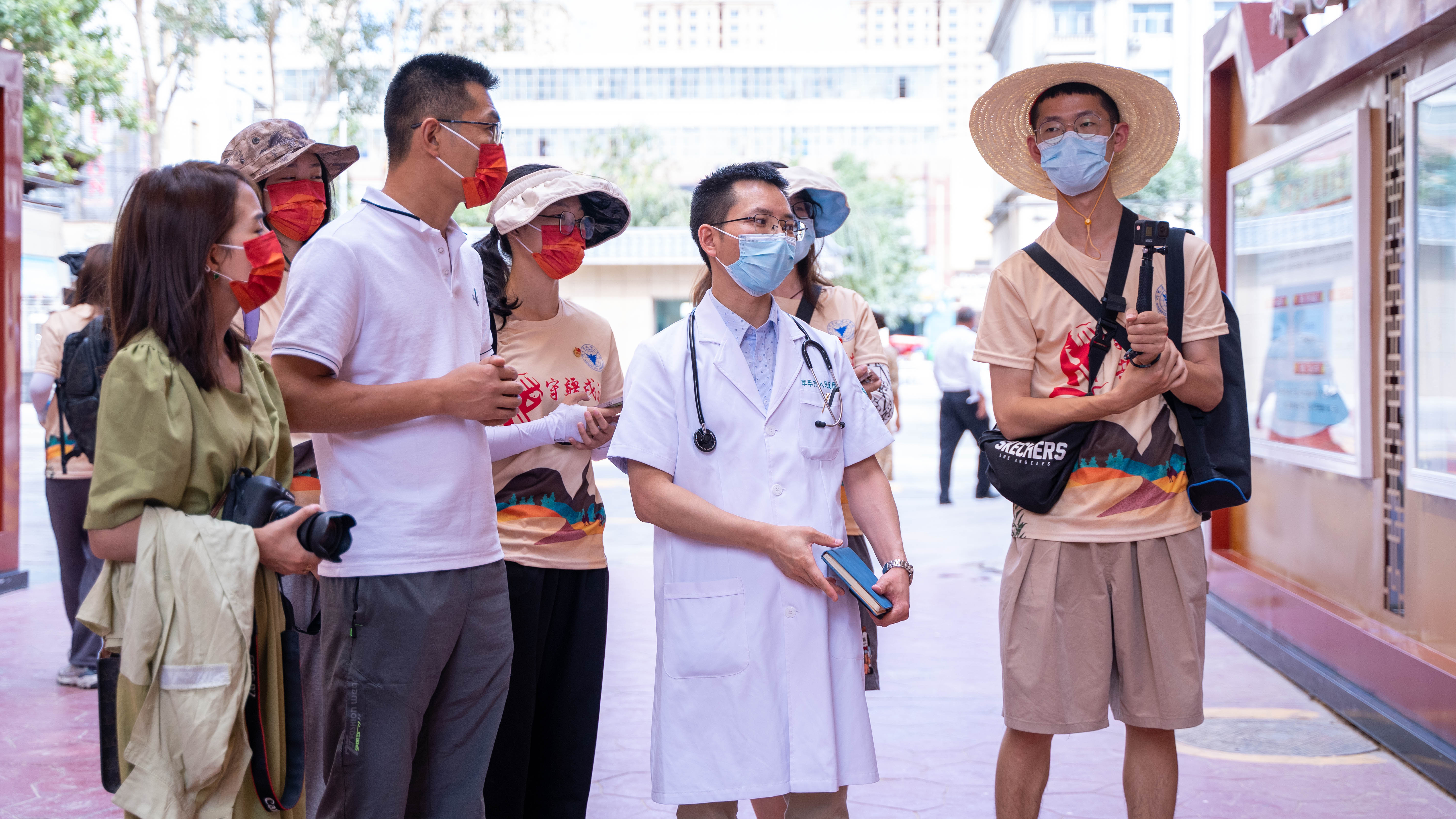 实践团在姜院长的介绍下,了解医疗援疆之路,感悟甬库医疗援助故事,更是有幸跟随四名援疆医生前往各个科室体验援疆医生的工作日常。