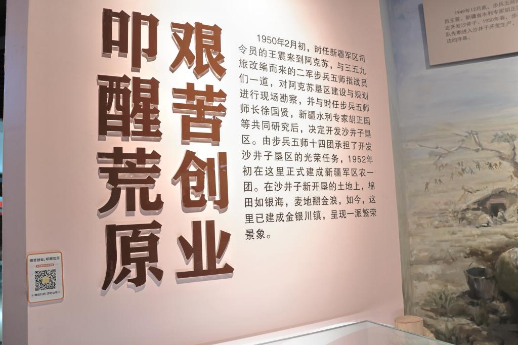 “金戈铁马战关山,负剑扶犁耕大漠。”三五九旅前身在土地革命时期是中国工农红军三大主力之一的红六军团;抗日战争时期是著名的八路军一二〇师三五九旅;解放战争时期,改编为中国人民解放军第一野战军一兵团第二军步兵五师。1950年,他们挺进新疆,解放新疆。1953年6月,奉毛泽东主席令,在塔里木盆地集体整编为新疆军区农业建设第一师。1954年,归入新疆生产建设兵团建制。“生在井冈山、长在南泥湾,转战数万里,屯垦在天山”就是对这支立过无数战功的英雄部队成长发展历史最形象的概括。三五九旅屯垦纪念馆已成为区内外游客接受革命传统教育的红色旅游基地和了解师市、新疆生产建设兵团及其建设成就的一个重要窗口。