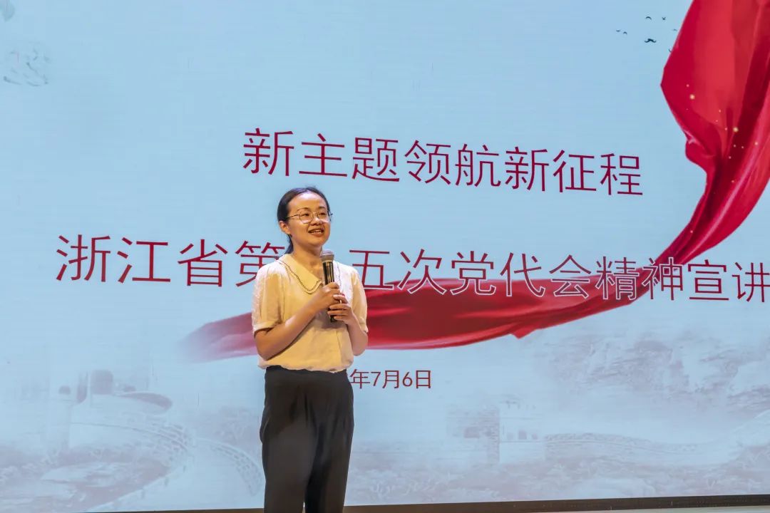 “时代方位催生了‘共同富裕先行’‘省域现代化先行’两大新主题!”“‘两个先行’的底气、指导思想、方向指引又来源于哪里?”马克思主义学院聂迎娉副教授以生动活泼的浙江案例、真实鲜活的浙江数据为观众们带来了浙江省第十五次党代会精神宣讲。宣讲中,她通过数据分析、政策解读、互动交流等方式,切实把党代会的重点、要点讲透、讲清、讲实,让此次宣讲既精准又走心。