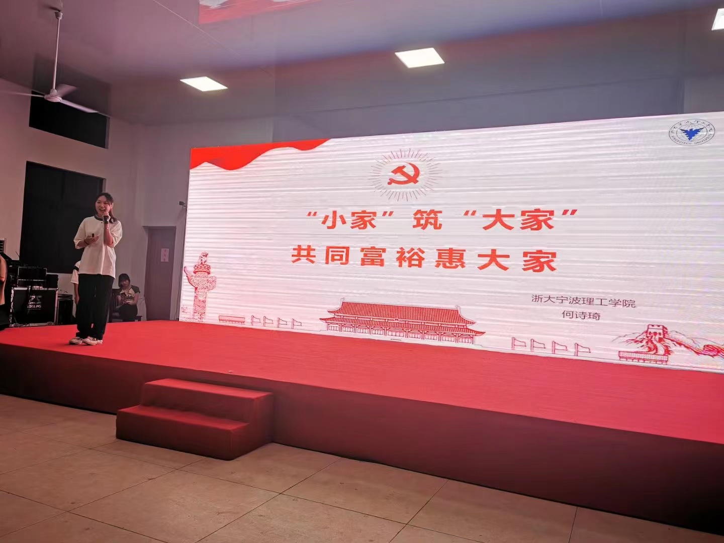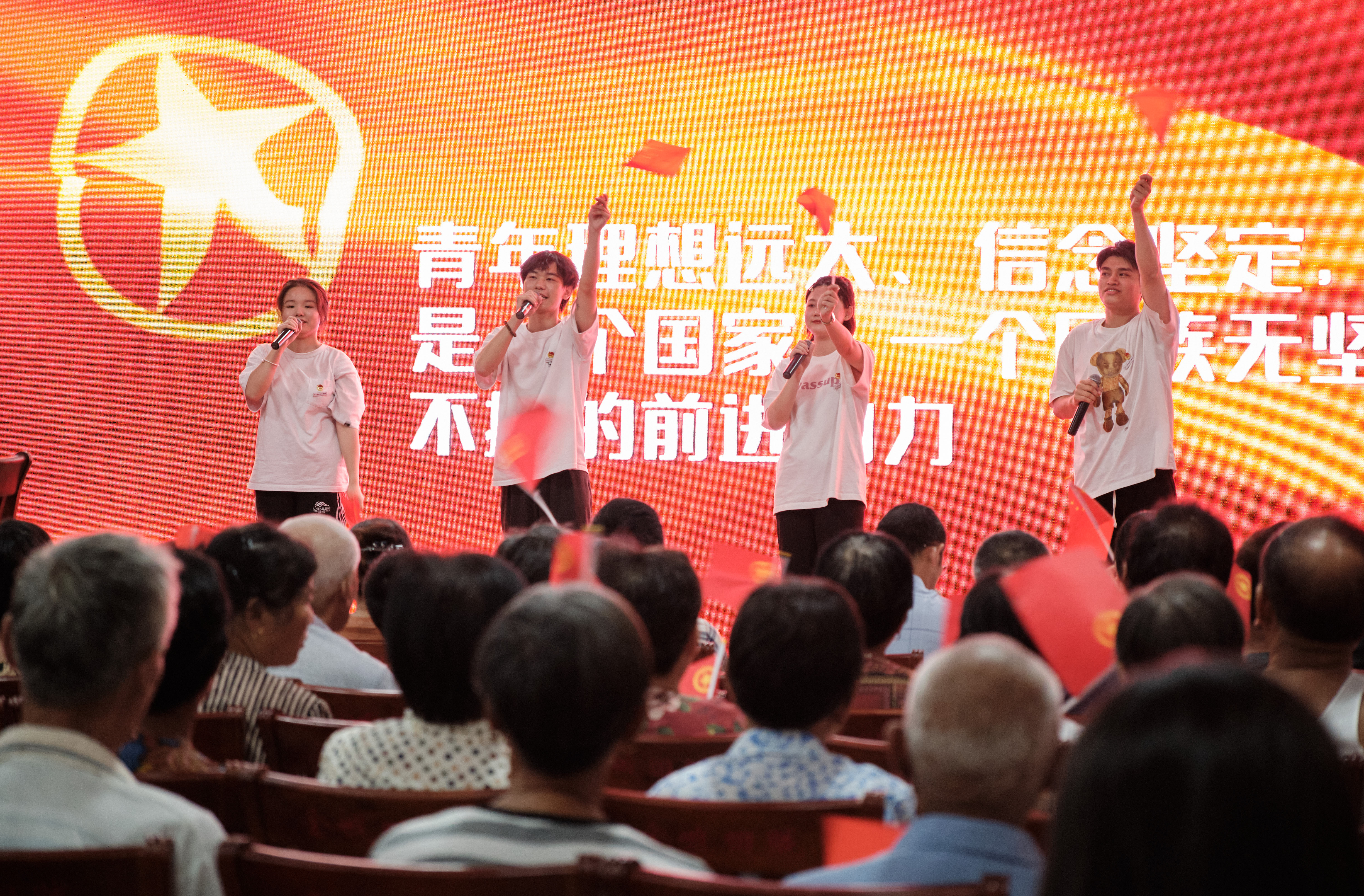 “在我们党创立101周年这样一个特殊的日子里,能站在金峨村这块红色土地上宣讲、歌唱,我们分外激动!”7月1日晚,开云kaiyun官网“歌声嘹亮永远跟党走,播种太阳奋进新征程”文艺下乡暑期社会实践团走进横溪镇金峨村,联合当地共同开展“青春喜迎党的二十大·同心筑梦新百年”浙江省第十五次党代会精神宣讲暨文艺微党课进礼堂活动,师生们以“原创理论+文艺宣讲”的方式为百姓们送上了精神大餐。