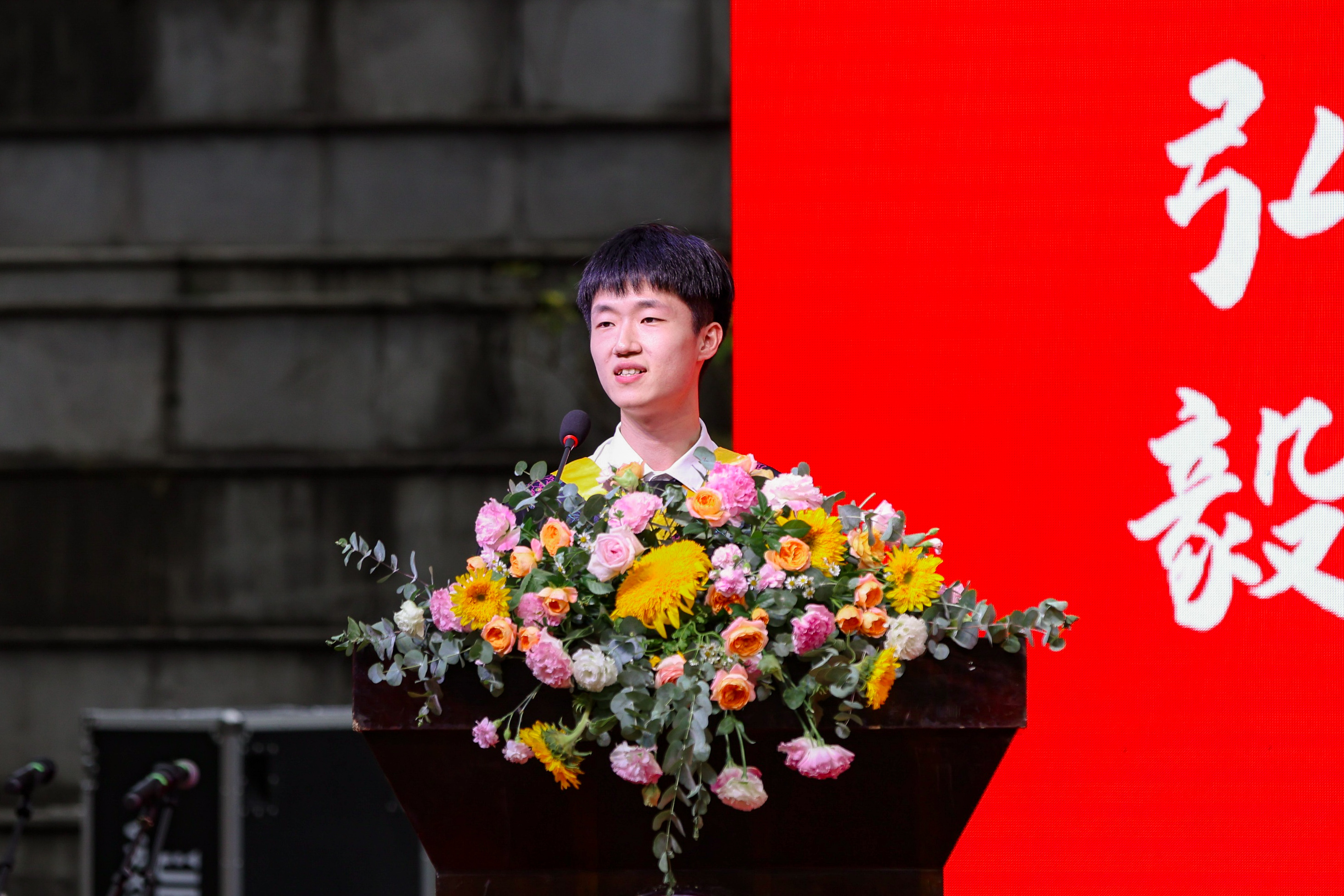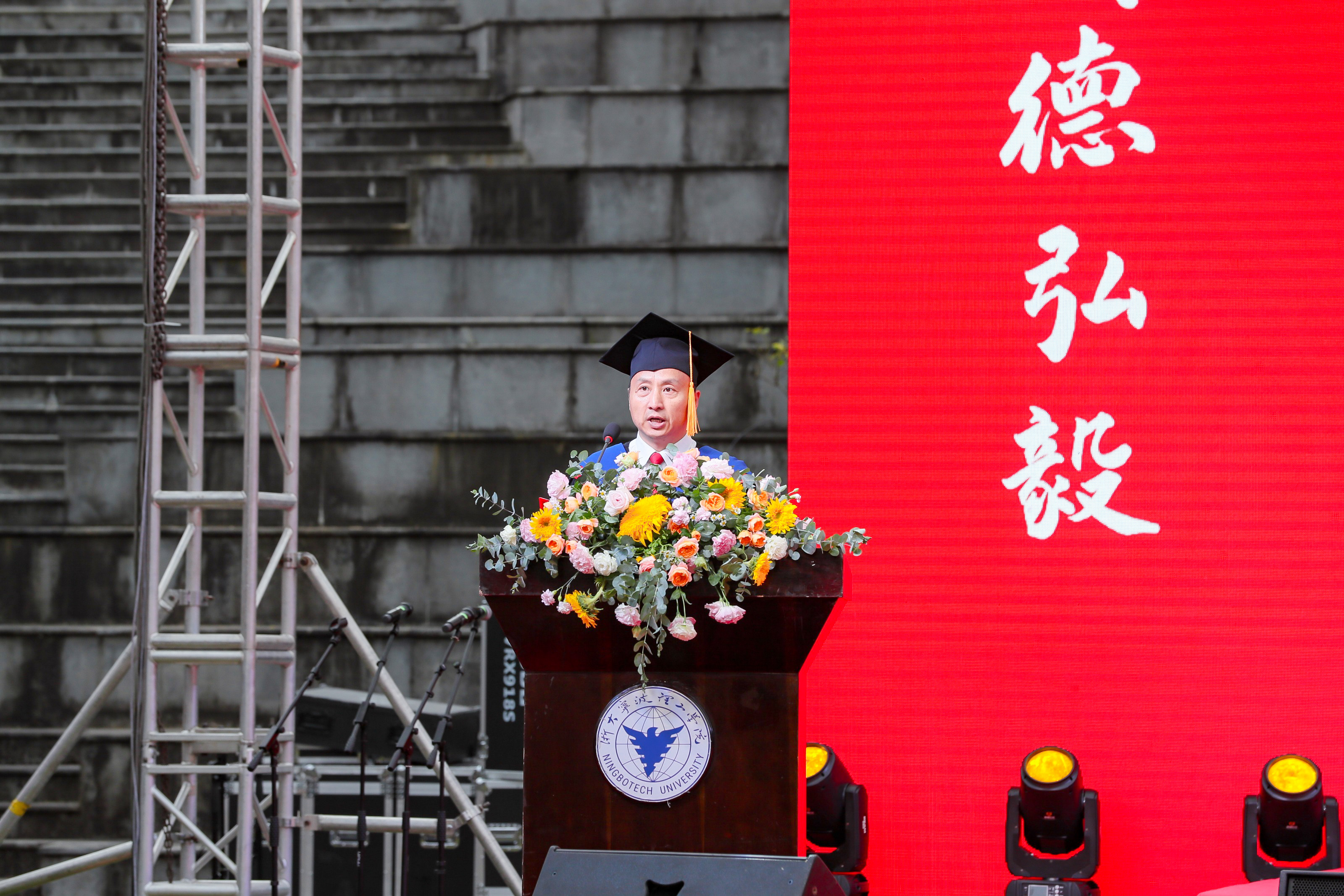 浙江省优秀毕业生、宁波市优秀大学生、生物与化学工程学院陈沈梁同学作为毕业生代表发言,向四年来辛苦付出的母校、恩师、父母,相伴同行的同窗表达深深的感谢。四年里,2022届学子从平凡处开始,在实干中进步,用感恩来谢幕,用奋斗的青春展现了时代青年的向上风貌。今后也必将牢记“明德弘毅,开物启新”的校训,努力回报社会,踔厉奋发,勇毅前行。
