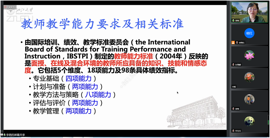 李艳教授从智能时代课堂教学面临的挑战、全球教育技术应用与发展趋势、教师教学能力要求及相关标准和高校教师教学能力的提升策略等4个维度,预测并描述了未来全球高教技术的应用与发展趋势。从专业基础、计划与准备、教学方法与策略、评估与评价和教学管理等5个维度、18项能力及98条绩效指标,讲述了由“国际培训、绩效、教学标准委员会”制定的教师能力标准。讲座既有理论高度又极具实战指导意义,让教师们耳目一新、受益匪浅。