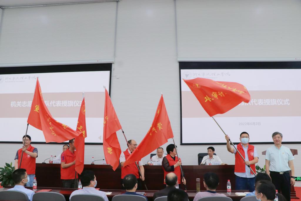 会上,举行了机关作风监督评议员聘任和机关志愿服务队代表授旗仪式。
