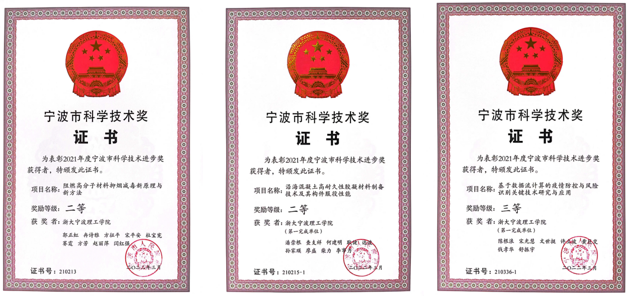 近日,宁波市人民政府发布了《2021年度宁波市科学技术奖获奖名单的通报(甬政发〔2022〕10号)》,开云提名的3项成果获得宁波市科学技术奖。其中二等奖2项,三等奖1项。