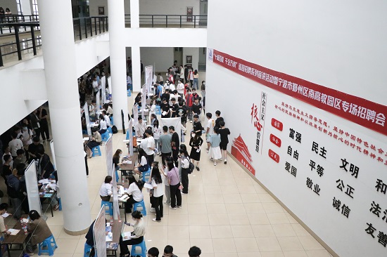 5月26日,“十城百校 千企万岗”巡回招聘系列宣讲活动暨宁波市鄞州区南高教园区专场招聘会在学校NC大厅举行。当天,来自宁波鄞州区50家单位参会,2000余名毕业生参加了此次招聘会。学校党委书记胡征宇、副校长鲁东明、纪委书记黄光杰及宁波鄞州区人社局局长王力波莅临指导本次招聘会。