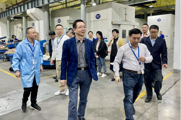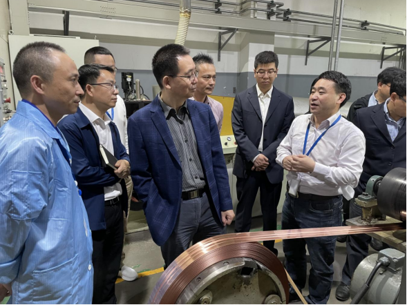 在公司领导的陪同下,胡征宇书记、杨德仁校长一行先行来到康强电子有限公司的生产车间,参观了冲压引线框架、蚀刻引线框架等多条生产线,全面了解了公司在半导体封装材料方面技术研发和生产工艺的发展水平。