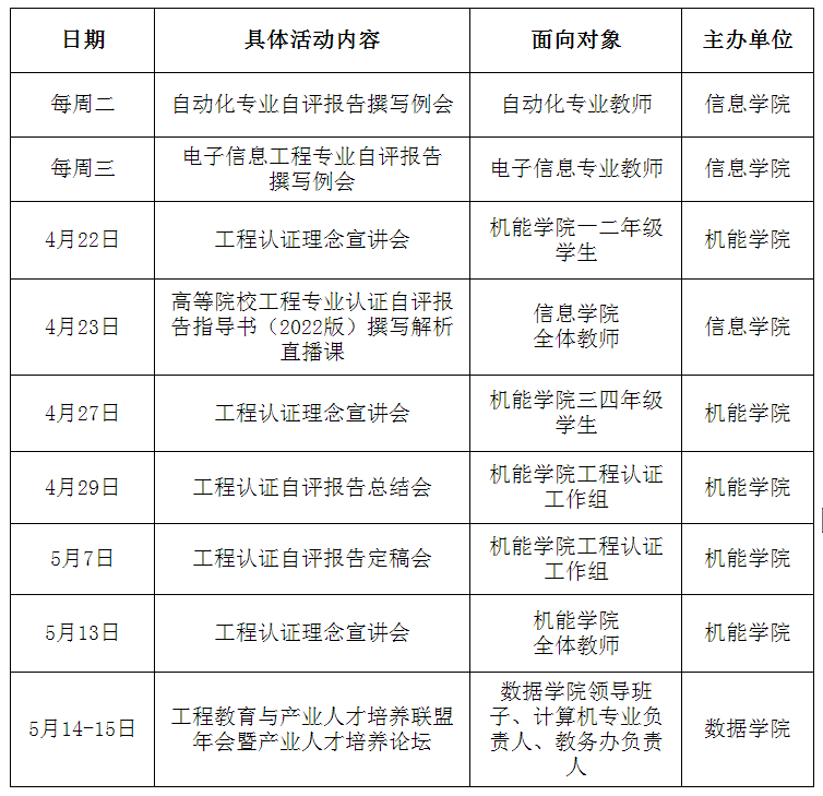 “工程教育专业认证”系列活动安排(第二阶段)