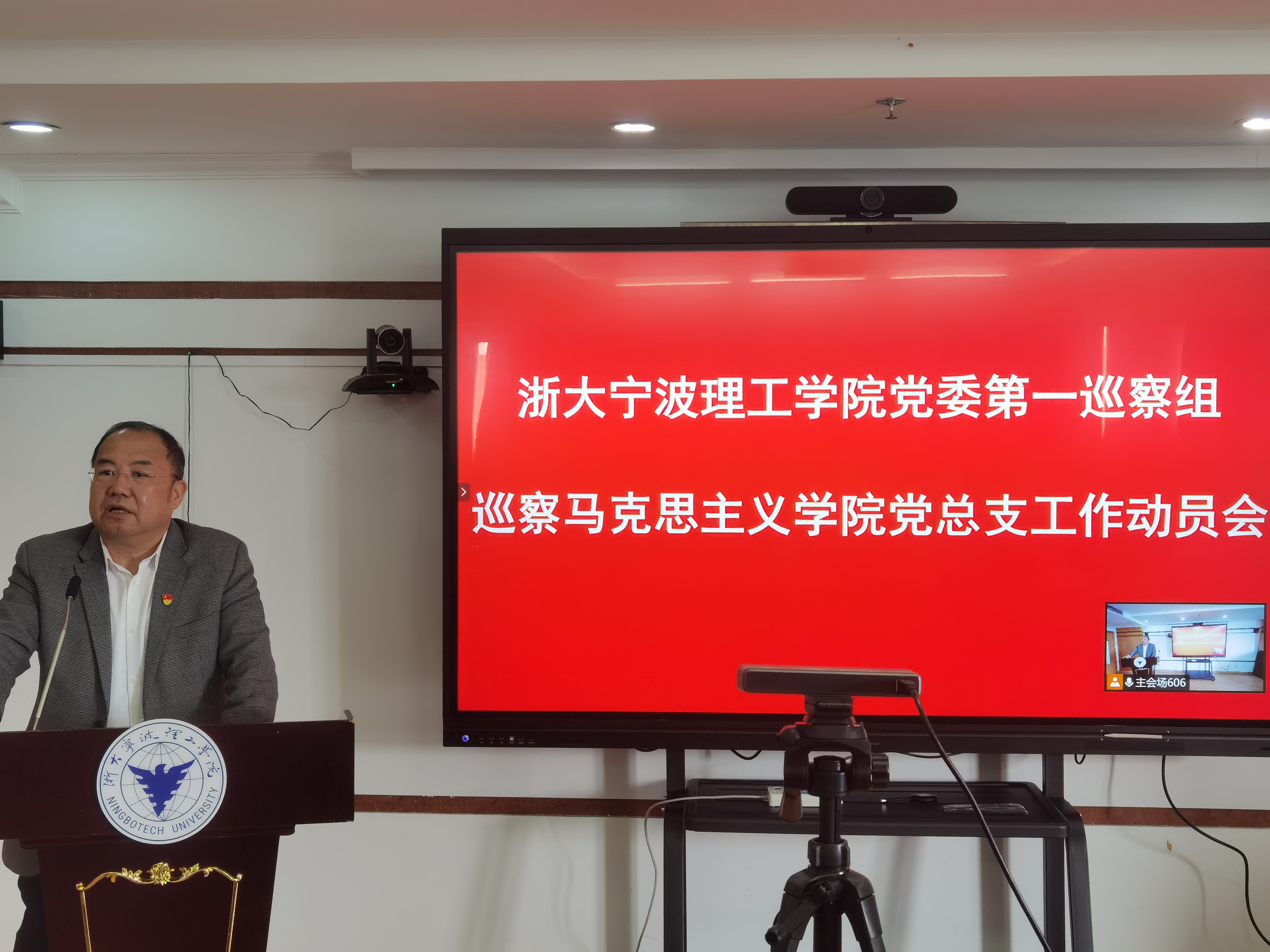 4月20日,学校党委第一巡察组巡察马克思主义学院党总支工作动员会在行政楼606会议室召开。学校党委副书记、巡察工作领导小组副组长李凤旺作动员讲话,并对做好本次巡察工作提出要求。第一巡察组全体成员和巡察办相关人员出席此次会议。因疫情防控需要,马院全体教职工通过线上和线下两种方式参加动员会。动员会由马院党总支书记伍醒主持。