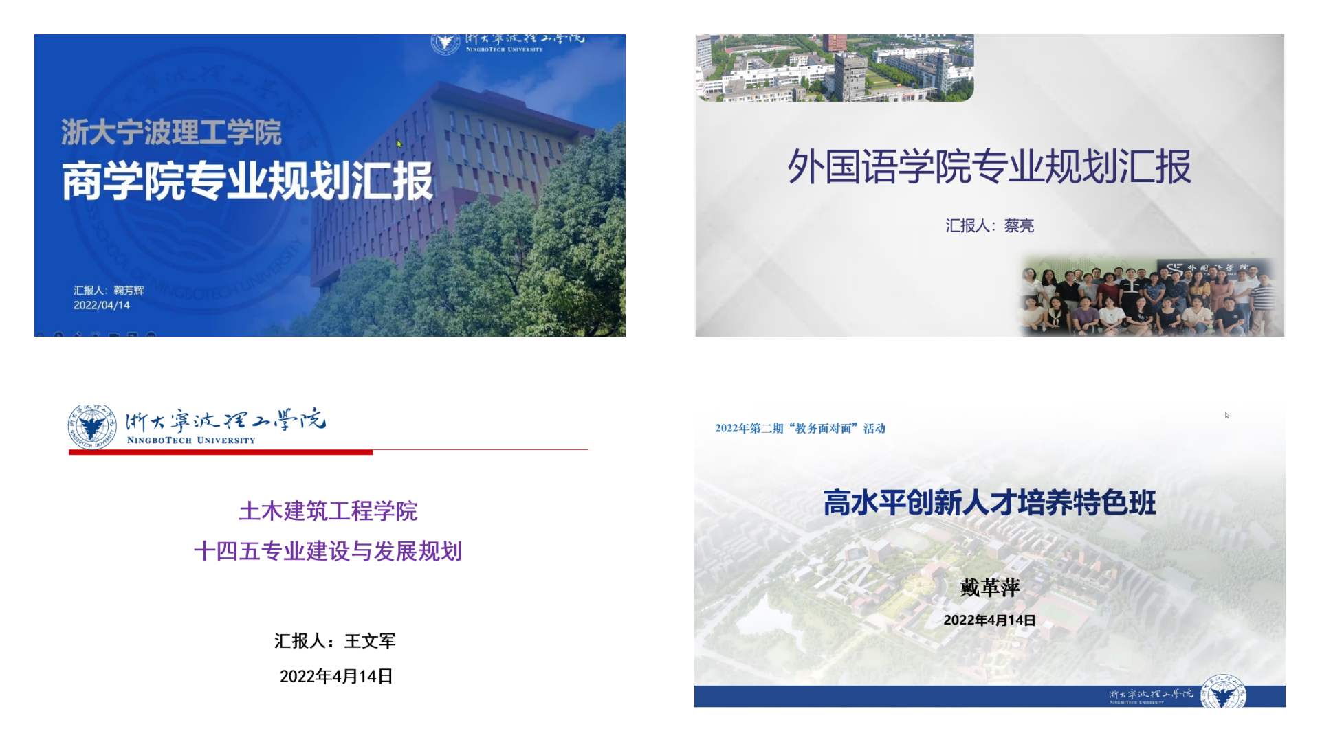 本次活动以“专业规划调研、专业特色凝炼和高水平专业群建设”为主题。鲁东明充分肯定了各学院在专业建设方面的思考和举措,指出“十四五”专业发展规划的编制要坚持“立足宁波、依托浙大、放眼全球”的发展思路,围绕建设高水平创新性应用型大学的办学目标,按照教育部“四新”专业建设要求深入调研、系统谋划。各学院、各专业要高度重视这项工作,深入调研、盘清“家底”、认清前景,在思想认识、发展路径、方案设计等方面形成普遍共识,打造有浙大宁理特色的专业体系;要依托现代产业学院、产教融合深化专业间、专业与行业产业的深度融合,培养行业急需的高层次拔尖人才。