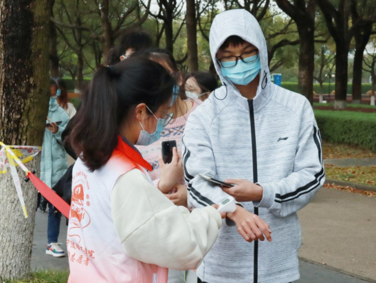 参与协助核酸检测的志愿者们,他们当中有退伍大学生,有学校求是鹰安全卫队,也有普通的学生。