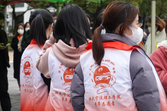 今天,宁波气温骤降,现场仍集结了40名志愿者,他们迎着初春的寒风坚守岗位,彰显了浙大宁理温度。