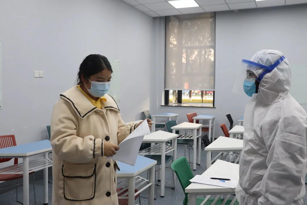 在考生转移时,全员全程无接触,并沿路消毒和设置隔离带,涉及到的教室保持通风,避免感染的可能。