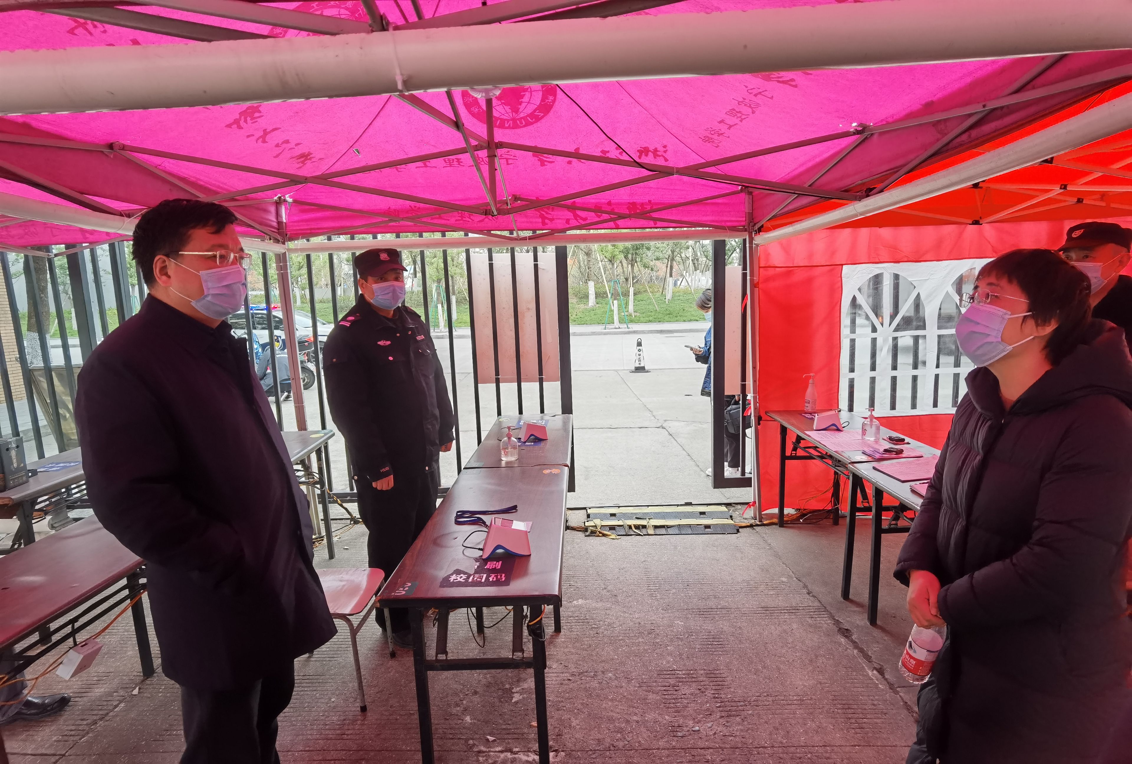 近日我省多地发生新冠肺炎疫情,学校疫情防控形势十分严峻复杂。学校新型冠状病毒肺炎疫情防控工作领导小组办公室发布了《关于进一步加强当前疫情防控工作的紧急通知》,组织部、教师工作部、学工部等部门相继发布了关于加强疫情防控的工作通知。为压紧压实疫情防控责任,落实疫情防控措施,纪委书记黄光杰带队开展了校园疫情防控责任落实专项监督检查。