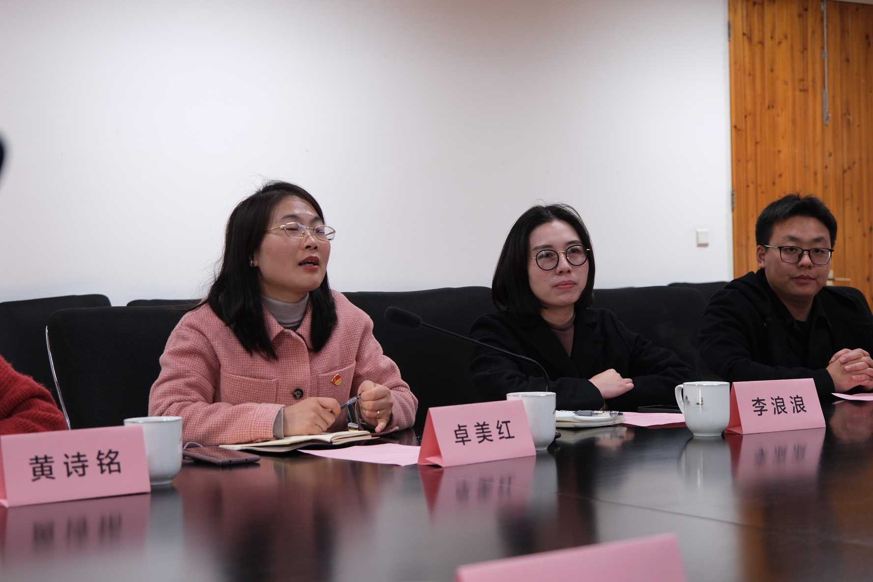 11月9日下午,中国美术学院团委书记卓美红结合学校专业特点,介绍了团学工作的整体情况,特别是美育育人背景下的志愿服务工作。她指出,美院志愿服务工作始终坚持专业联动的模式,发挥学科优势促进志愿服务工作专业化和社会服务化。近几年,打造了“美美讲堂”“千村千深”志愿服务品牌活动。会后,开云团干部参观了美院学子将党史和建筑学、设计学相结合的特色展览和作品。