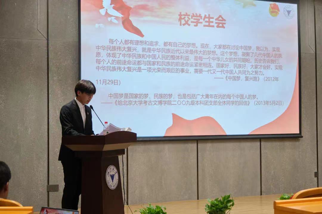 会议在庄严的国歌声中拉开序幕。“中国梦是国家的梦、民族的梦,也是包括广大青年在内的每个中国人的梦。学生干部应当‘不忘初心,记住来时路’‘勤勉踏实,走好脚下路’‘着眼未来,创新未来路’。”校学生会主席团成员郑晓颖领学《习近平总书记关于青少年学生成长的重要摘录》,各学院学生会执行主席结合摘录段落,逐一分享个人学习心得。