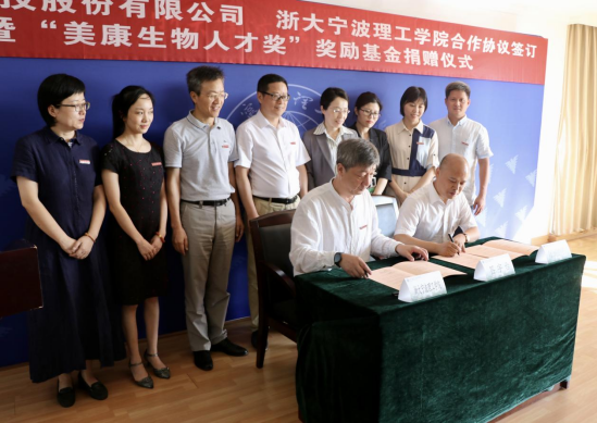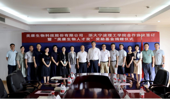 9月24日,开云kaiyun官网和美康生物科技股份有限公司合作协议签订暨“美康生物人才奖”奖励基金捐赠仪式在行政楼602举行,学校党委书记胡征宇、副校长鲁东明、美康生物总经理邹继华等出席捐赠仪式。
