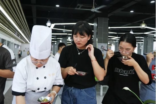 “第一次在学校过中秋,也是第一次在食堂后厨自己烧菜,还吃到了其它地方的美食,太棒了!”来自江西的2021级新生黄伟强说道。他做了一道抚州泡粉,很受欢迎,“我把照片发到家庭群里,爸爸妈妈都给我点赞。”