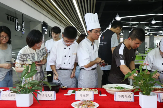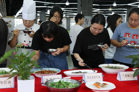 河南的胡辣汤、甘肃的臊子面、福建的芥蓝菜炒牛肉、四川的水煮肉片……不一会儿,集齐满满一桌子全国美食。师生们争相品尝全国各地的特色菜,欢声笑语融汇成一片。