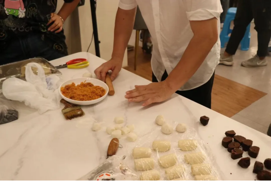 在弘毅园,留校的研究生们正在一起制作“求是”月饼,共同庆祝中秋佳节的到来。小巧玲珑的月饼嵌入校徽“求是鹰”的元素,将学校文化与传统美食相结合,既有意义又有味道。