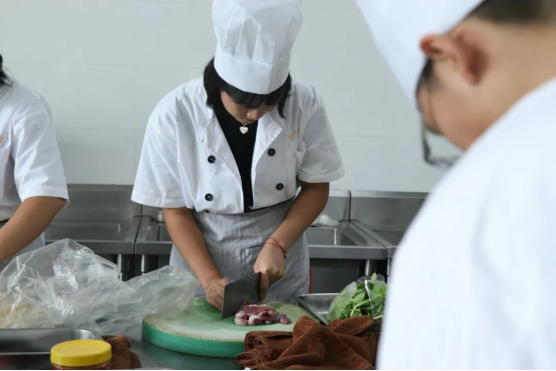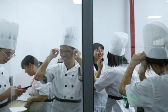 在开物园餐厅,来自12个不同省份的同学参加了“寻味家乡菜”的活动。同学们都是第一次走进食堂后厨,第一次穿上白褂子,第一次戴上厨师帽,第一次用大勺大锅炒菜,新奇和兴奋之情溢于言表。