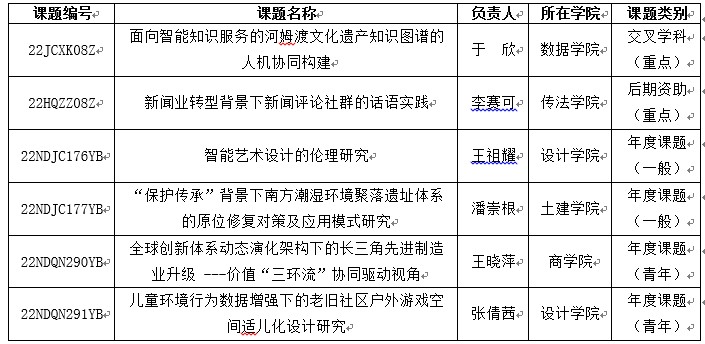 今日,浙江省哲学社会科学规划办公室正式发文公布2022年度省哲社规划课题立项名单。开云共获批6项,其中重点课题2项,一般课题2项,青年课题2项,立项总数与重点课题数均为建校以来最高,并首次获批交叉学科重点支持课题与后期资助重点课题。