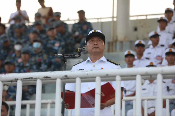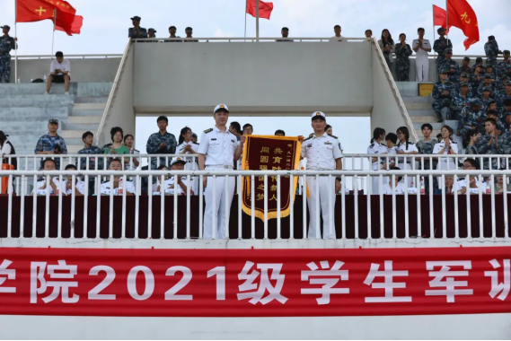 自8月29日开始,13天的军训短暂美丽,刻骨铭心。教官、老师、学员间种下了友谊的种子,结下了深厚的战友情、师生情、同窗情;承训的91428部队和学校多年来始终保持密切联系,谱写了“共育时代新人、同圆强国之梦”的军民鱼水情。胡征宇代表学校向承训部队赠送锦旗。主席台人员和参训学员全体肃立,欢送教官。