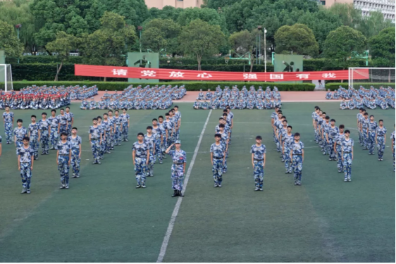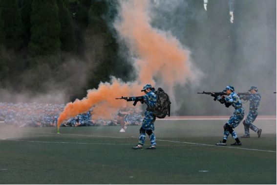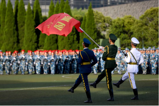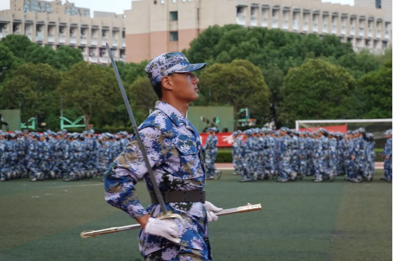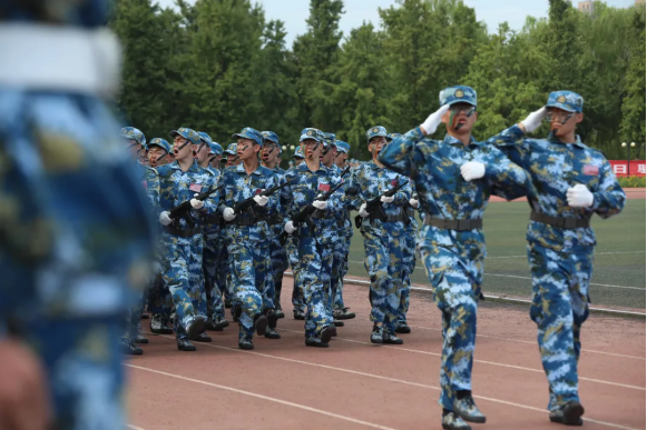 “开始!”伴随着庄严的阅兵进行曲,胡征宇在部队参谋长、团长的陪同下,检阅参训学员。“同学们辛苦了!”胡征宇向十八个受阅方阵致以亲切问候。受阅方阵队列严整,学员们身姿挺拔、目光如炬,“为人民服务!”的响亮誓言响彻校园。