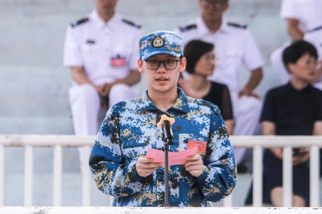 一连二排黄文韬同学代表全体参训学员表态发言。他承诺,在这场“训体魄、训思想、训作风、训纪律、训品格”的军训大考中,参训学员必将服从命令,听从指挥,认真学习,刻苦训练,在未来生活中继承发扬优秀思想和良好习惯,做有志气、骨气、底气的新时代青年。