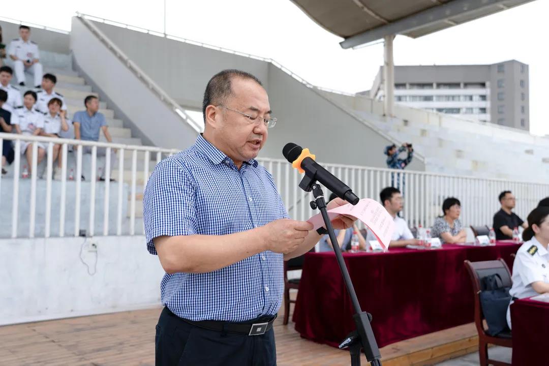 胡征宇作开训动员。他代表学校向帮训的教官和参训的干部表示衷心的感谢,向全体参训学员致以亲切的问候。他指出,大学生军训是一种重要且特殊的教育形式,在锻炼体魄、增强体质,铸就信仰、锤炼意志,严守纪律、增进团结等方面有着无法替代的作用。军训期间,参训学员要面对战胜的不仅是酷热的天气、身体上的挑战,还有军人铁一般的纪律、心理与意志上的磨练;要完成的不仅是军训这门简单的课程,而是一场全新的蜕变。他要求参训学员要拿出认真负责的态度,一切行动听指挥,认真完成每一次训练和每一个动作;拿出顽强拼搏的意志,视军训为磨练心性和锻造精神品质的绝佳机会以证明、改变并提升自己;拿出持之以恒的精神,将每一次锻炼和提升变换青春的底色与人生的财富,全力以赴地成为一名合格的军人。他热切期盼参训学员能通过自己的努力和拼搏,像军人一样经历血与火的洗礼,成为国家的钢铁长城。