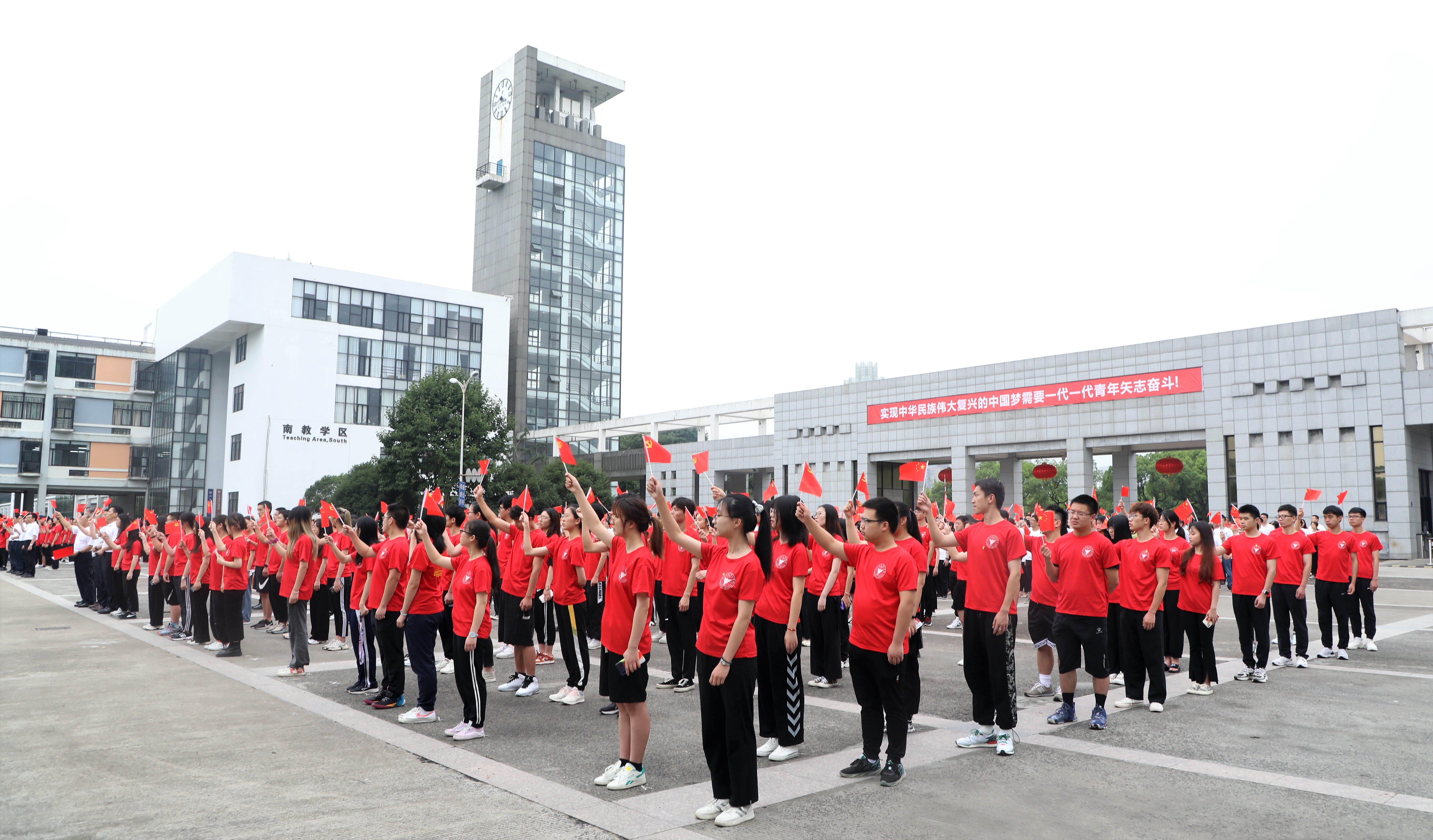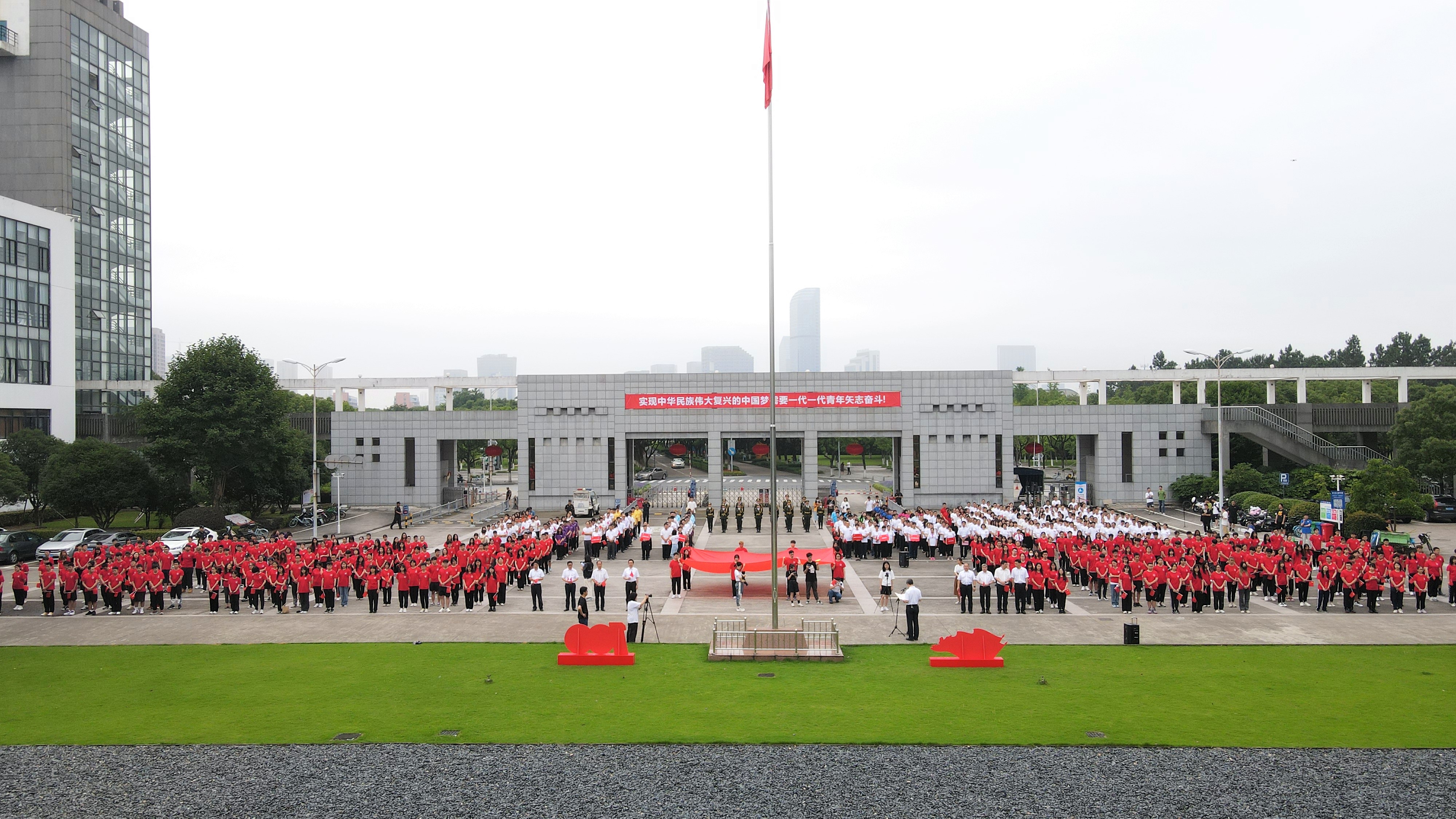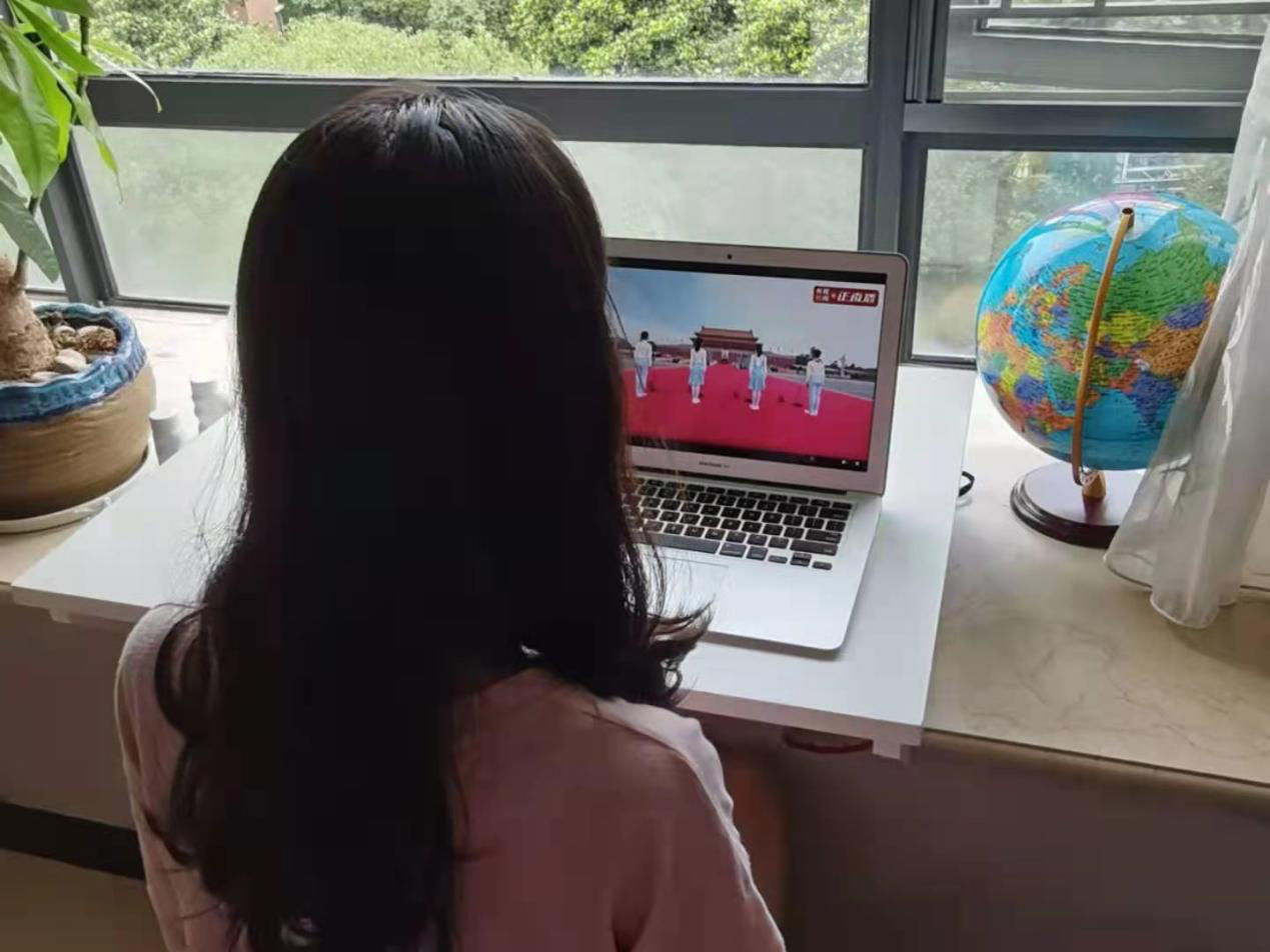 全场师生齐声合唱《没有共产党,就没有新中国》,升旗仪式在雷鸣的掌声和洪亮的歌声中落下帷幕。