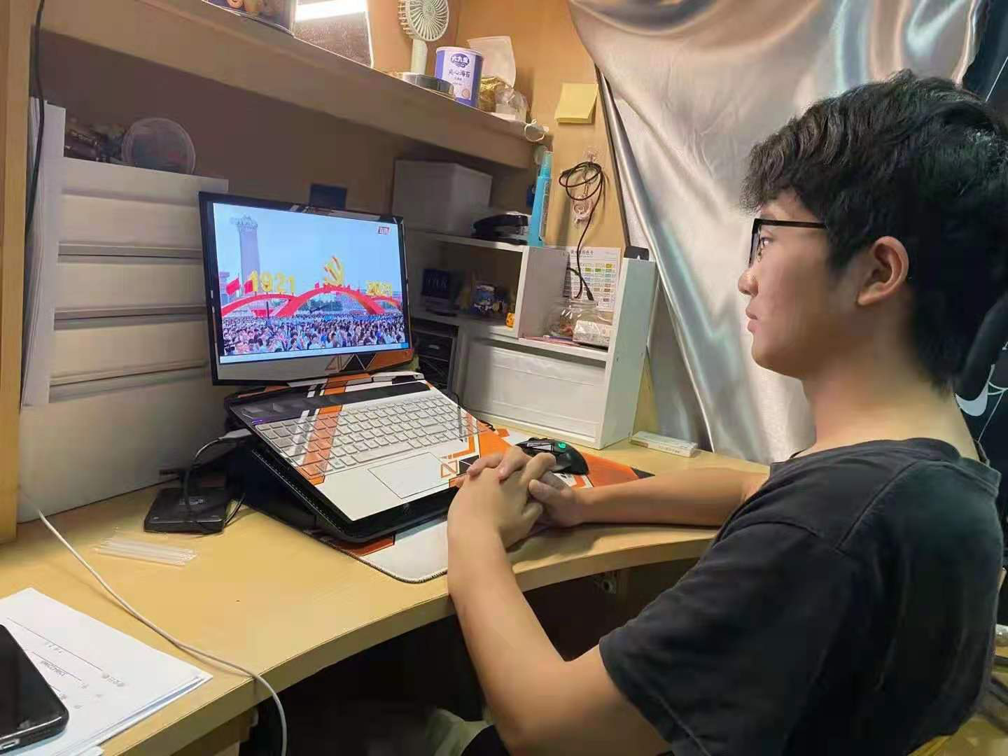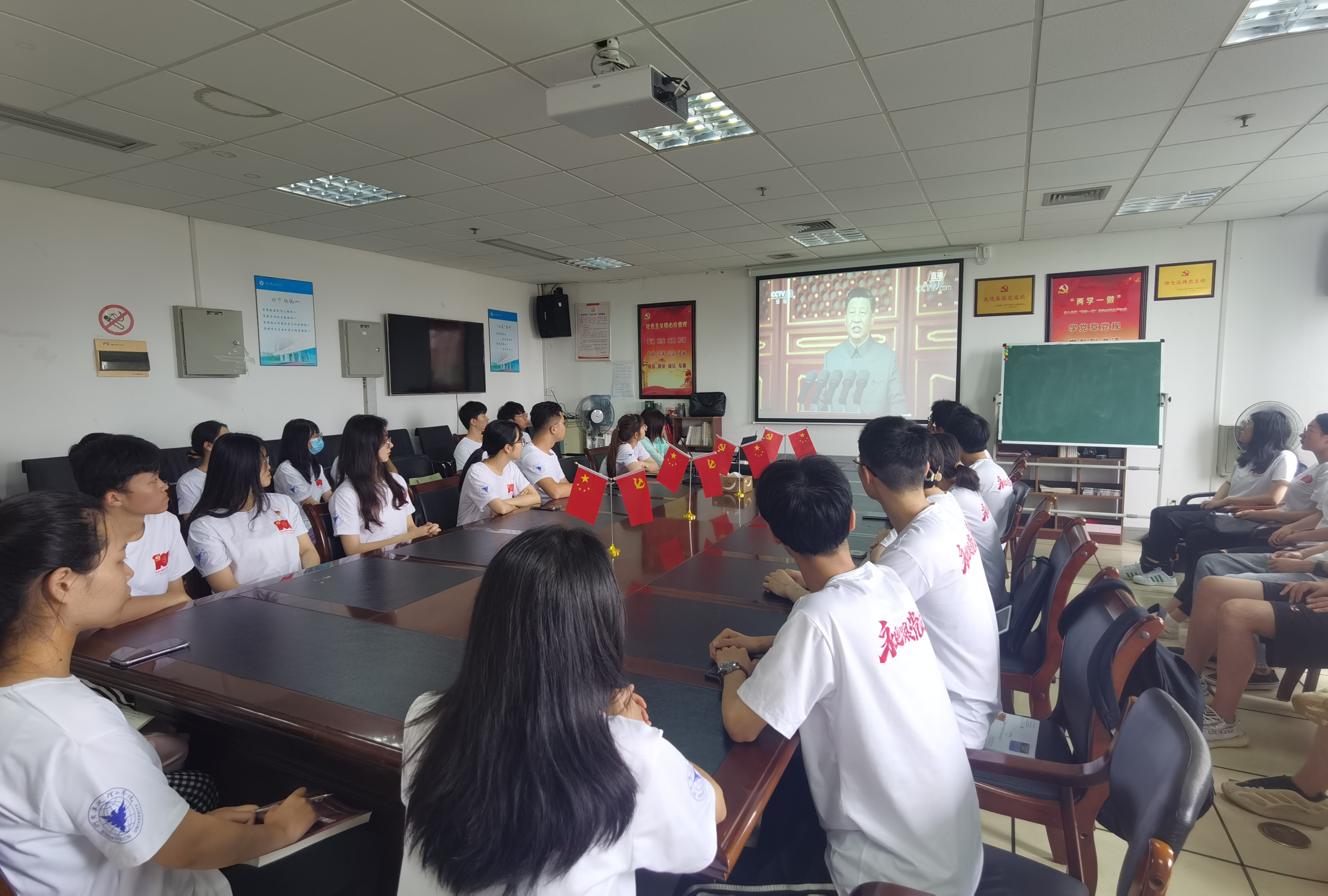 学校在启新大讲堂、各党员之家、教室、食堂等地设置直播点;同时,广大师生在寝室、实验室等地及时收看直播。收看点气氛热烈,师生们心潮澎湃,神情专注,认真收看;并通过朋友圈、微博等在线形式表达了对中国共产党成立100周年的衷心祝福和不忘初心砥砺前行的决心!