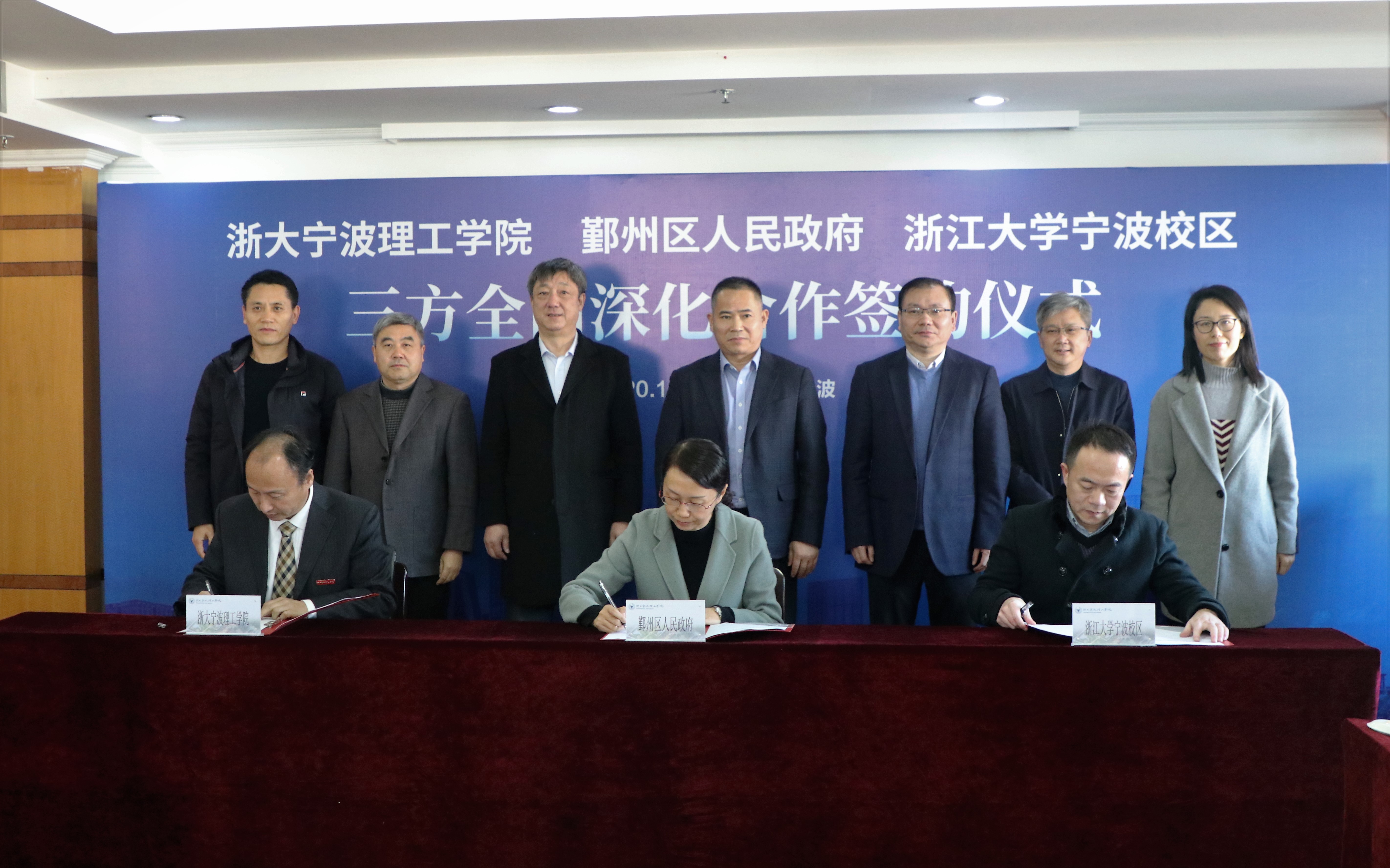 朱晓丽、冯建波、单世涛代表各方签署协议。根据协议,三方将按照“优势互补、共同发展、务实高效、互惠互利”原则,推进科技创新领域合作,共同成立浙大宁波理工研究院、建设浙江大学宁波校区(校友)产业孵化园、共建产教融合示范园(学院小镇);创新人才引育合作,共建“人才飞地”,联合招聘博士后,加大应用型人才培养力度,健全人员双向交流制度实现人才资源共享;开展文化教育领域合作,实施文化策划与服务计划,共同推动基础教育、旅游文化发展,建立专业管理、技术人员继续教育基地,增强双向互动共赢。