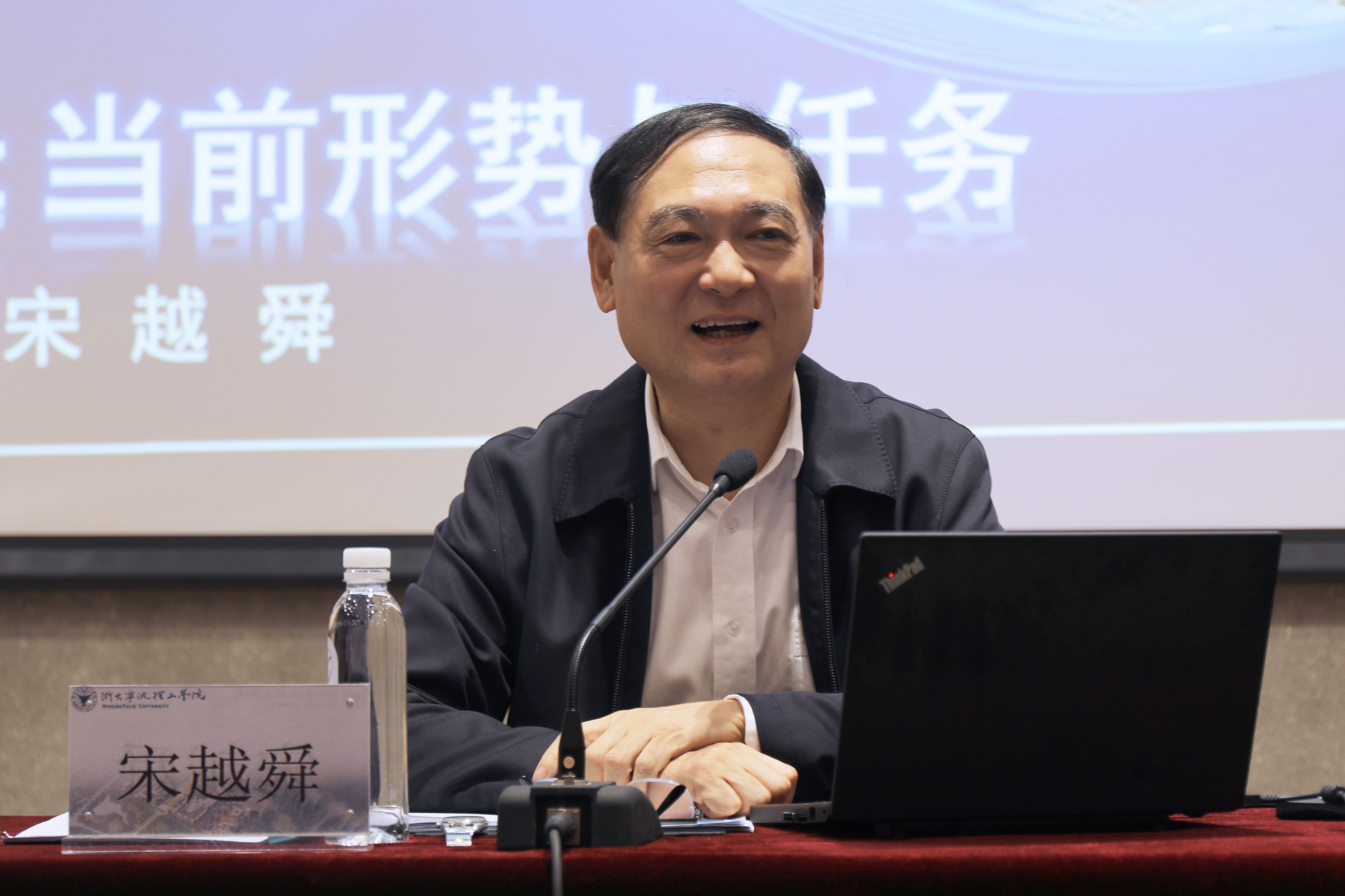 胡征宇在主持时指出,宋越舜副书记是学校联系领导,面向师生宣讲形势与政策是贴近师生的有效形式,是关心重视师生思想政治工作的重要制度安排,体现了市委、市政府对学校发展、师生成长的关心与爱护。学校将紧紧围绕宁波发展战略,根植宁波大地,实现弯道超车,推动办学高质量内涵式发展,为区域地方经济发展作出更大贡献;勉励同学们要与时代同拍共奏,更多了解宁波、爱上宁波,毕业后留在宁波,为城市发展贡献力量。
