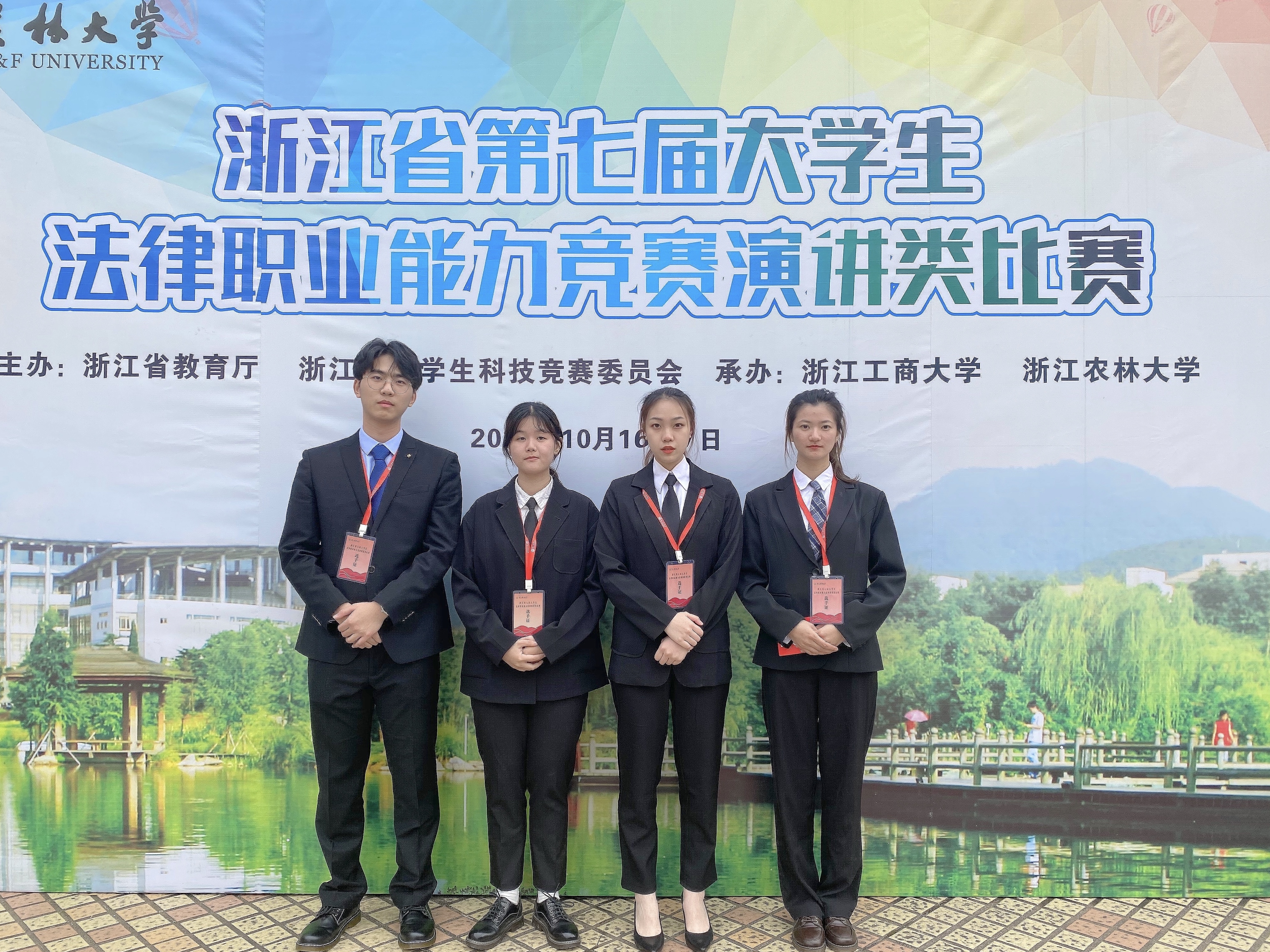10月17日,开云传媒与法学院李枫、吕捷、顾子惠、刘春燕等4名学生在周仲琦老师的带领下赴浙江农林大学参加浙江省第七届大学生法律职业能力竞赛演讲类比赛决赛。