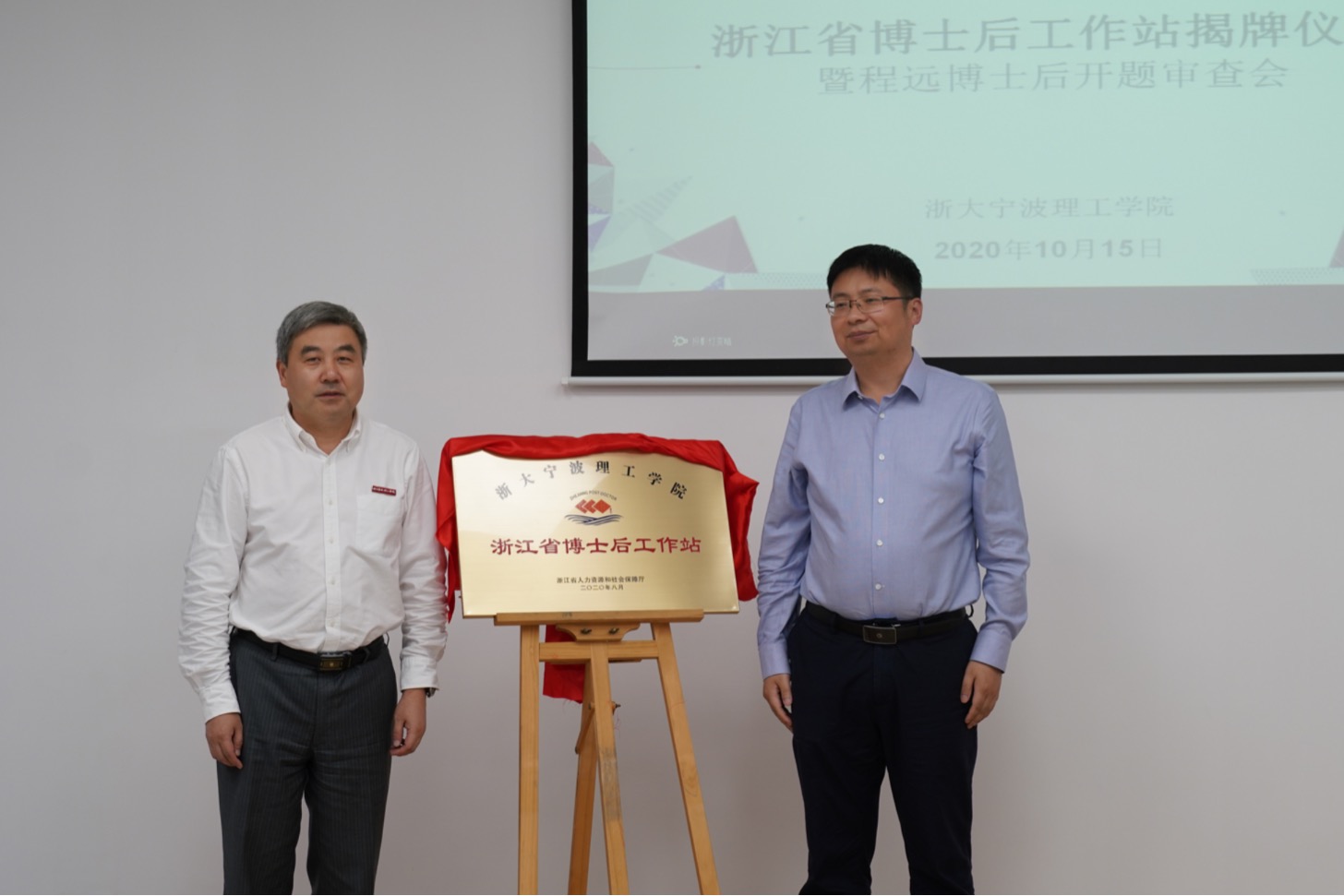10月15日下午,学校举行浙江省博士后工作站揭牌仪式暨商学院程远博士后开题审查会议。学校副校长章献民,人社局专技处处长郭涛、副处长刘红升,校人事处副处长俞峰、商学院党委书记李萍萍及专家考核小组专家参加此次会议。章献民和郭涛共同为博士后工作站揭牌。