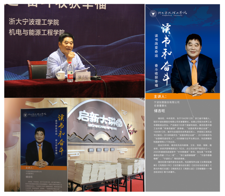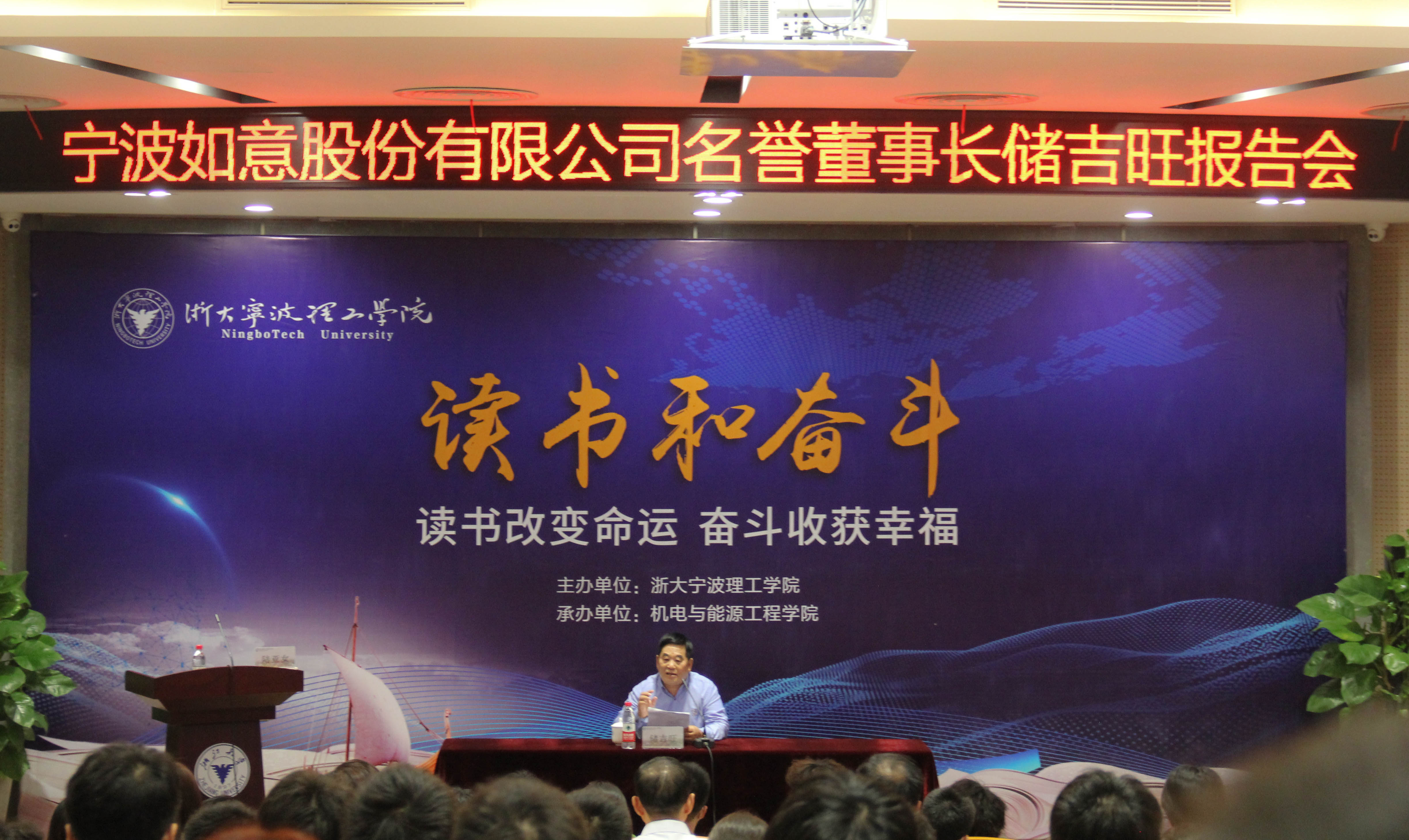 10月9日下午,宁波如意股份有限公司名誉董事长储吉旺应邀来开云作“读书和奋斗——读书改变命运,奋斗收获幸福”主题报告。学校党委副书记冯建波出席报告会。党委学工部部长陆亚女主持报告会。