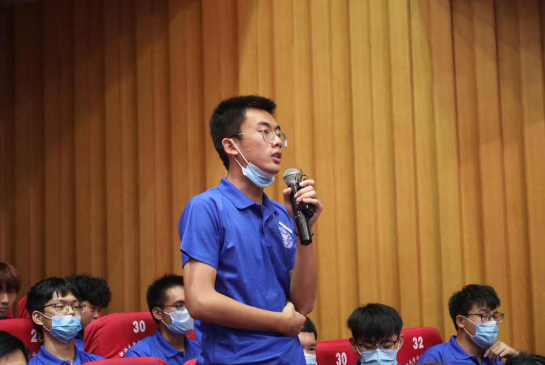 在交流中,同学们积极踊跃提问:“杨校长,我们该如何脱离传统的拘束,提高创新能力?”“作为2020级专升本的新生,如何在课程安排很满的情况下锻炼创新能力?”“工科学生要怎样接触到创新的前沿?”