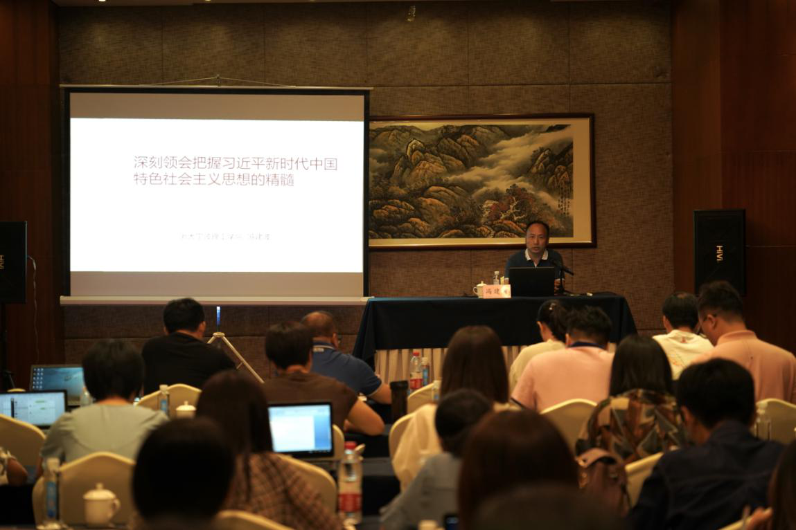 学校党委副书记冯建波作《深刻领会把握习近平新时代中国特色社会主义思想精髓》报告。他从“习近平新时代中国特色社会主义思想是什么?”、“伟大思想从何而来?”、“深刻把握新思想的体系和精髓”和“领会把握习近平总书记治国理政的方法”四个方面深入解析国家治理体系和治理能力现代化内核,提高辅导员理论学习素养,深刻落实立德树人教育思想。