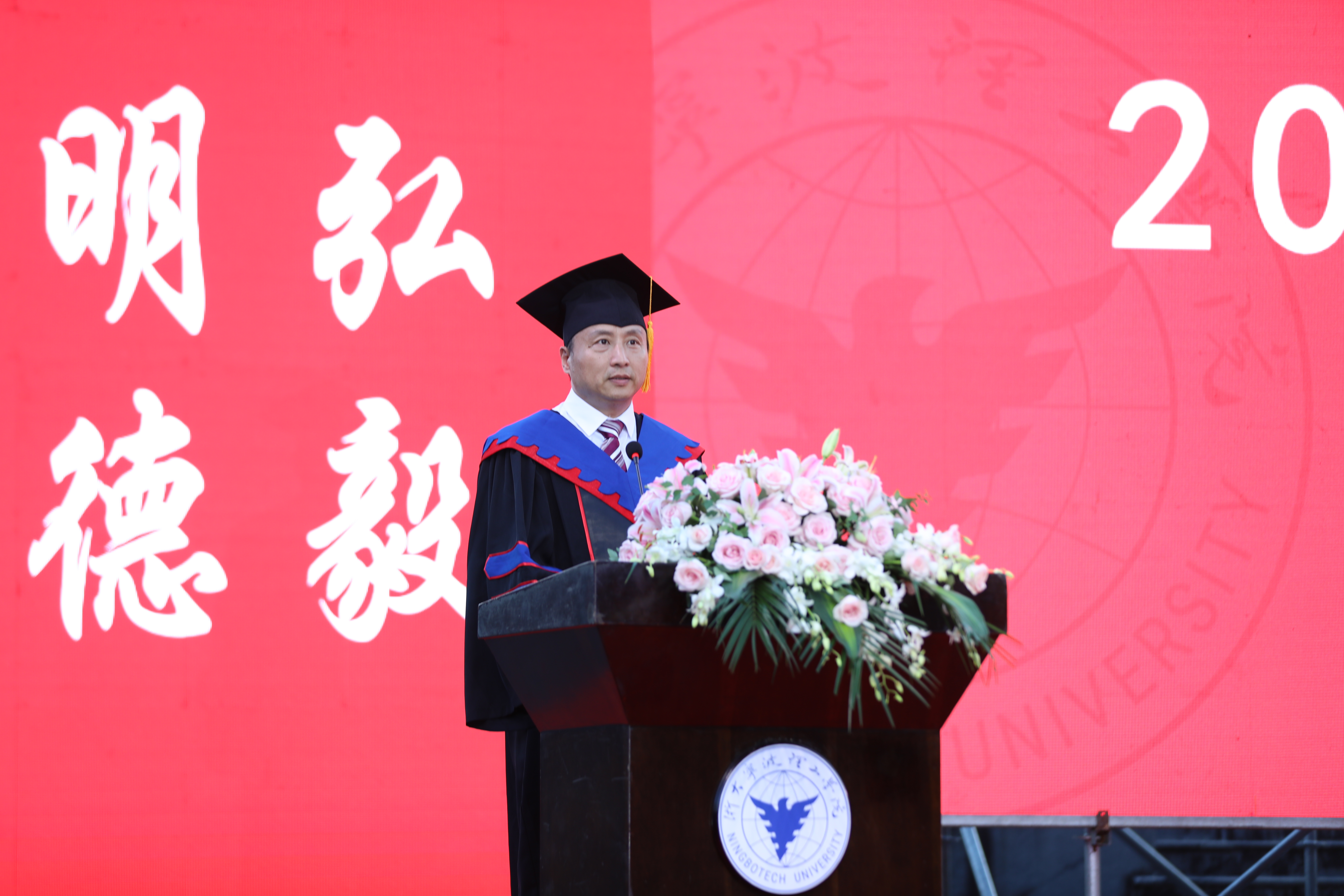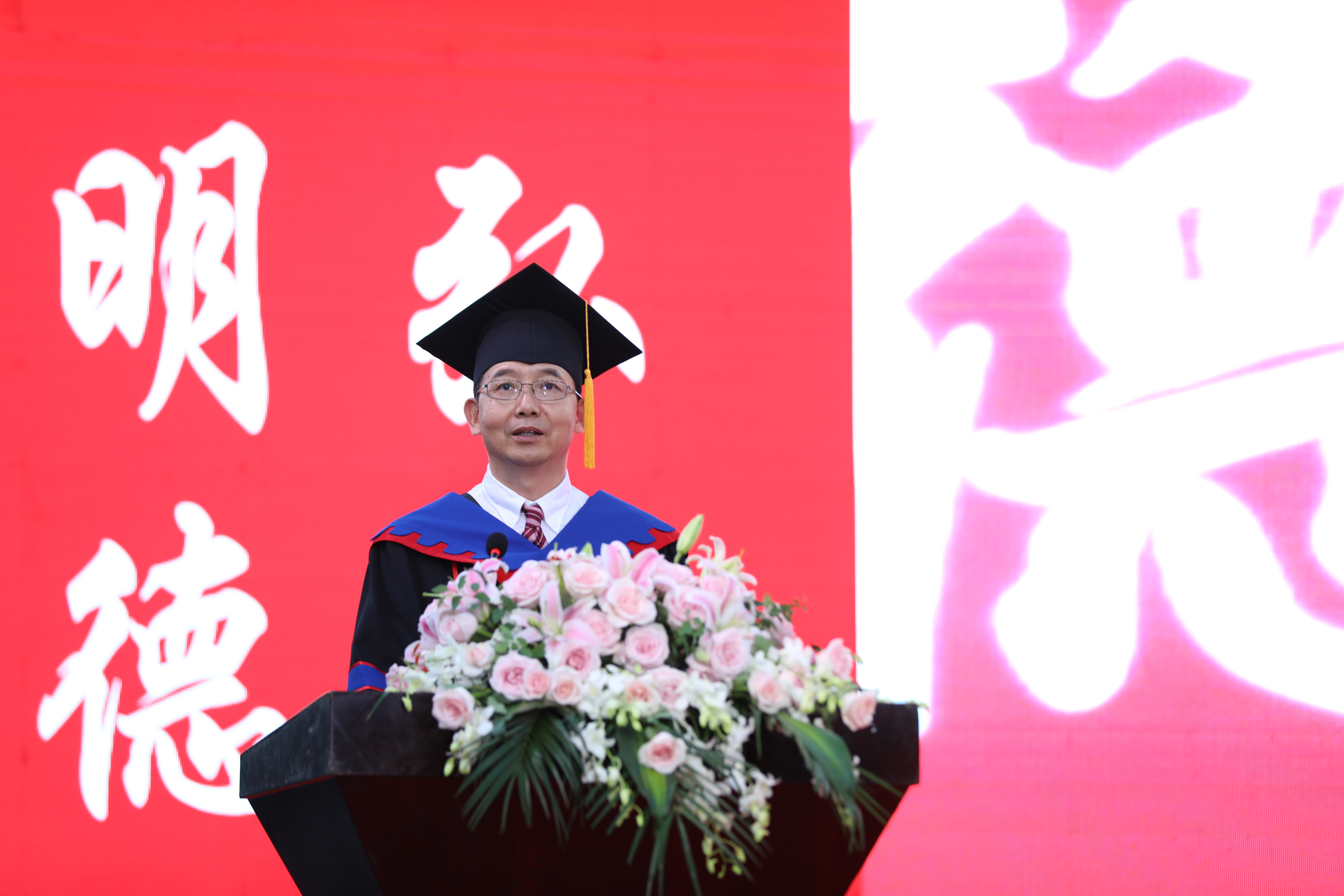 在热烈的掌声中,校长杨德仁院士为学校转设后首届本科毕业生上大学最后一课。他幽默地表示,这是毕业生的“BIG DAY”,是他担任校长以来欢送的第一届学生,也是他的“BIG DAY”。他与在场师生一同回忆了过去四年的青春、梦想、奋斗和成长,并为同学们送上叮嘱。他希望同学们勇担使命,顶天立地,情怀入梦、家国入心、使命在肩,将自我实现的“小我”和国家发展的“大我”紧紧结合,在祖国大地上书写人生华章。他希望同学们敢闯善创,不懈奋斗,不驰于空想,不骛于虚声,始终博学笃志、苦练本领,敢于探索尝试,敢于挑战未知,真正将爱国之志转化为报国之行。他希望同学们爱护家庭,生活幸福,孝顺父母,夫妻和睦,重视家教、注重家风,言传身教,将所有美好化作人生幸福力量。他祝福同学们奔涌前行,争做新时代“硬核”新青年,叮嘱同学们常回家看看,母校永远是人生旅途中最温暖的家。