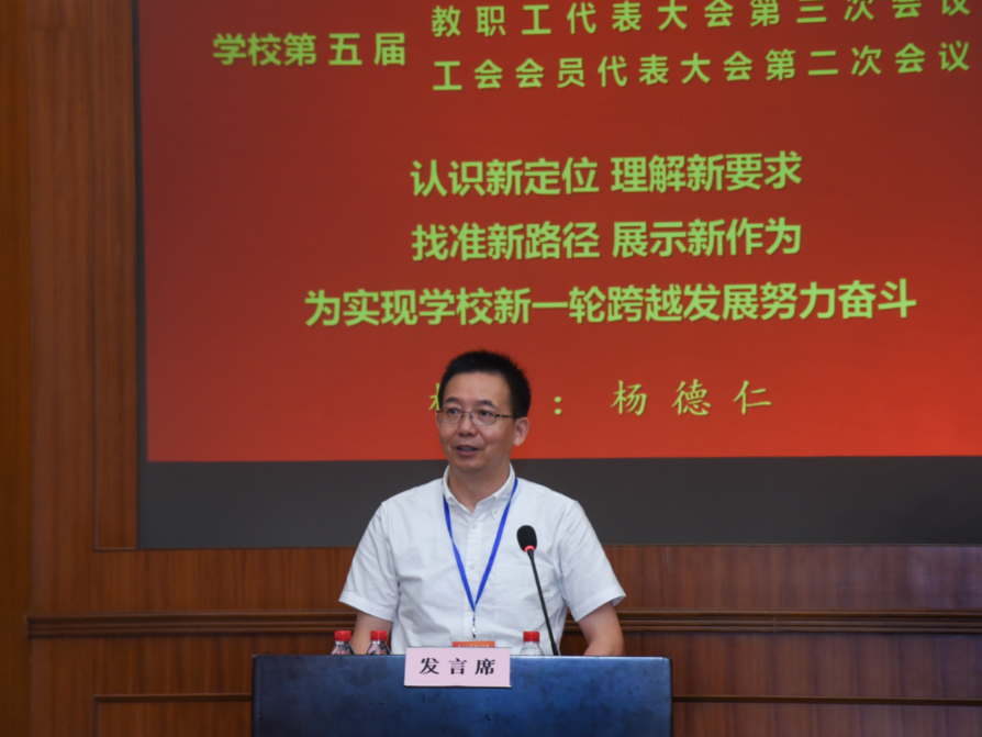 校长杨德仁代表学校作题为《认识新定位理解新要求找准新路径展示新作为为实现学校新一轮跨越发展努力奋斗》的工作报告。