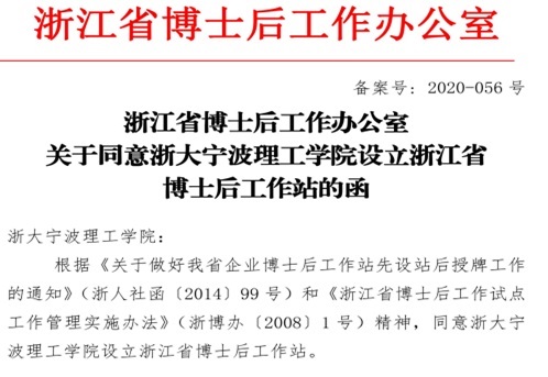 5月19日,浙江省博士后工作办公室发文,批准学校设立浙江省博士后工作站。