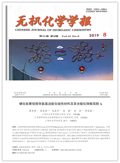 以化学工程与工艺专业2015级本科生郭冬菁为第一作者,学校教师胡美琴副教授为通讯作者的论文《磺化酞菁铝修饰氨基功能化磁性材料及其光敏化降解双酚A》发表在国内权威化学期刊《无机化学学报》,并被SCI收录。