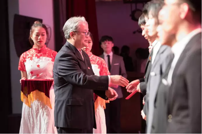 青春是人生之花的蓓蕾,绚丽夺目。篇章《绚烂的青春》展示了“十佳学生”在专业学习上的优异、科研竞赛中的成果、文体活动中的风采、志愿实践中的奉献,他们勇往直前,用汗水谱写青春的美丽乐章。章献民为他们颁发证书、绶带和奖杯。
