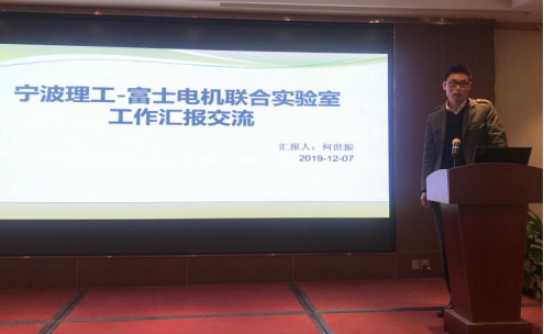 富士电机(杭州)软件有限公司主任何世振高级工程师,做了“宁波理工-富士电机联合实验室工作汇报交流”的报告,从多年的联合实验室合作经验,总结了产教融合“孵化器”对学生培养的作业。