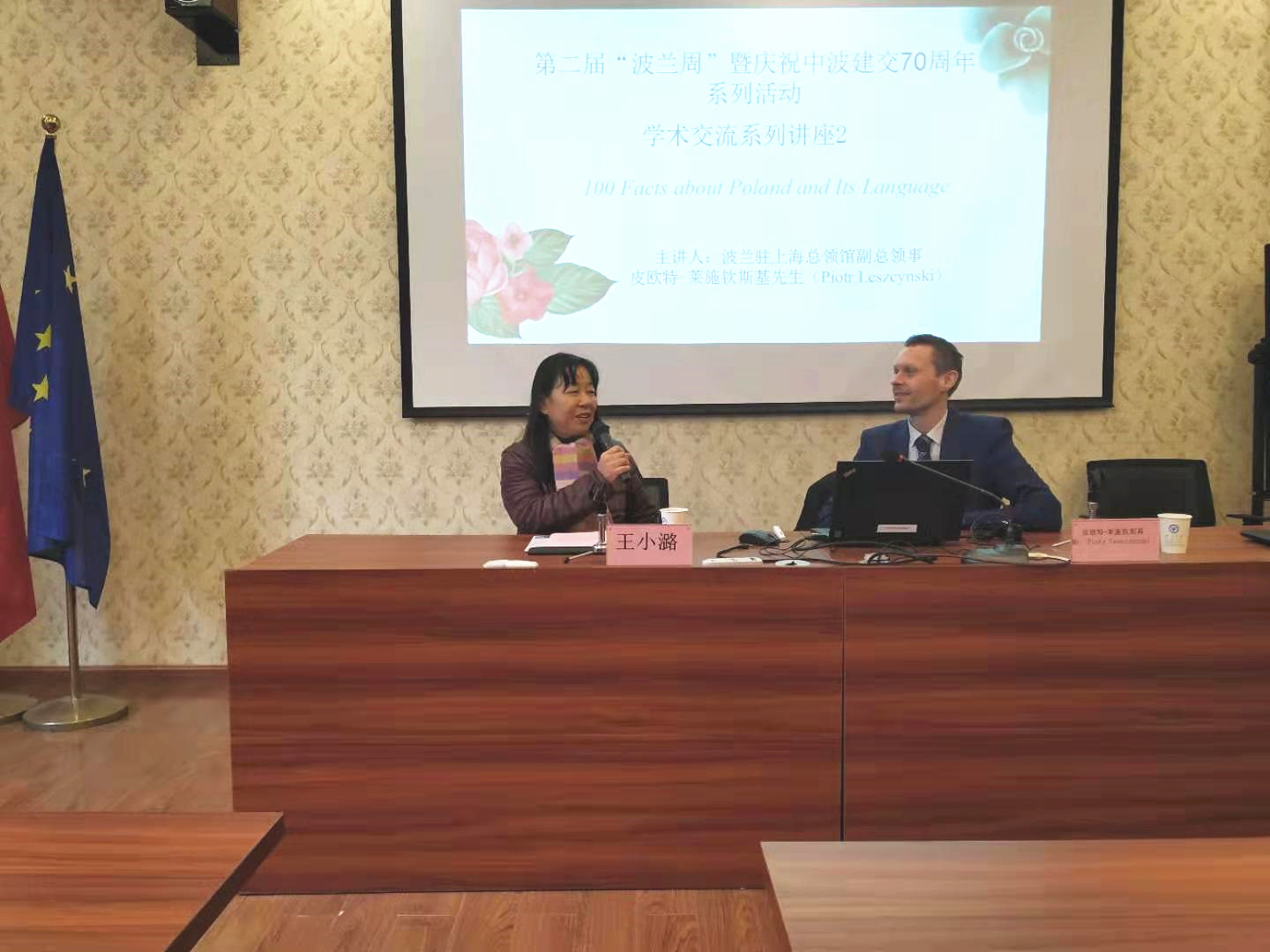 2019年11月29日上午,在波兰研究中心SC106,波兰驻上海总领馆副总领事皮欧特–莱施钦斯基先生为理工师生作了题为“波兰与波兰语言”的讲座。本次讲座是第二届“波兰周”暨庆祝中波建交70周年系列活动之学术讲座第二讲,由外国语学院院长、波兰研究中心主任王小潞教授主持。