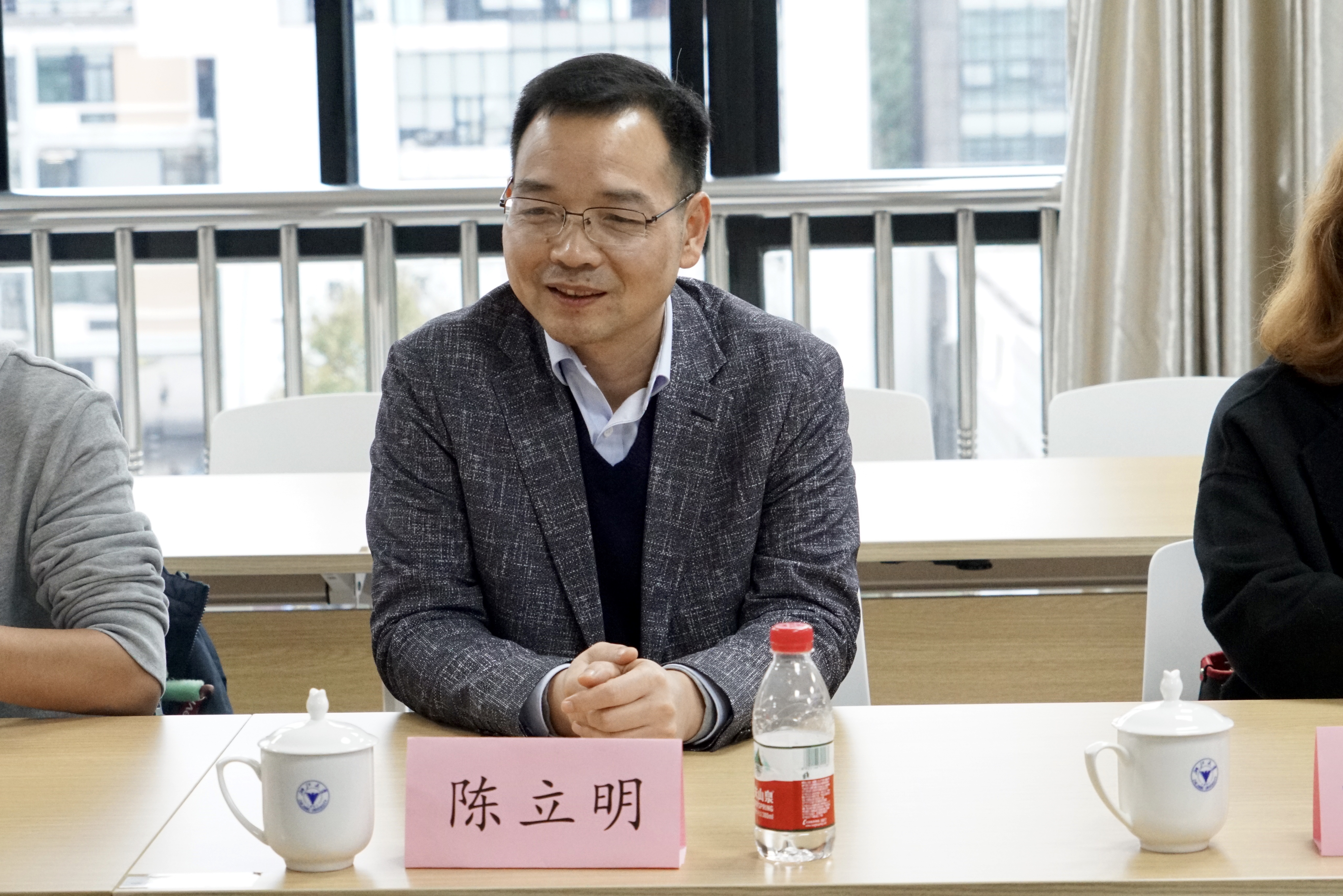 11月21日,浙江大学求是学院党委副书记、蓝田学园主任陈立明一行9人来学校考察交流,调研本科学生党建工作进社区、本科生班团一体化建设工作、高校网络育人建设工作,学校学工部部长陆亚女、宣传部副部长李炜等相关负责人陪同考察并参加座谈会。