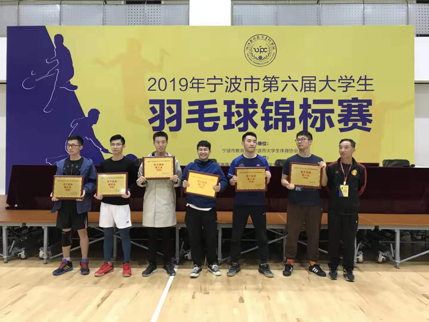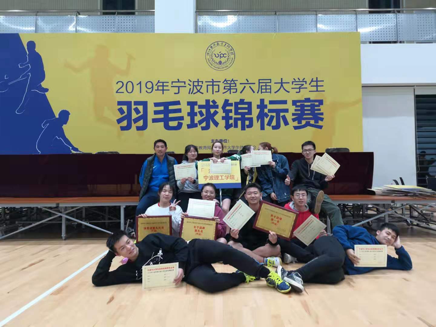 11月13日,宁波市第六届大学生羽毛球锦标赛在浙江医药高等专科学校(奉化校区)落下帷幕。此次比赛共有13所宁波高校参加,其中本科(甲组)7所,专科(乙组)6所,学校羽毛球队派出6男6女共12名队员参加。经过两天的激烈角逐,学校男子团体顺利拿下冠军,成为宁波高校首支卫冕的队伍。从小组赛到淘汰赛,男团均以优异的战绩取胜晋级,打出校队风采,打出理工精神,收获佳绩!