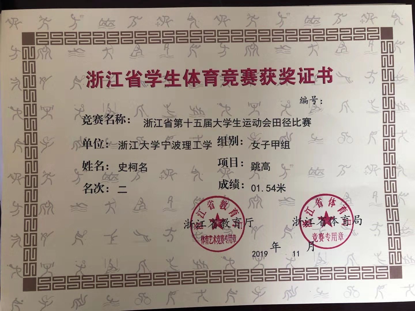 2019年11月10日,由浙江省教育厅、浙江省体育局主办的浙江省第十五届大学生运动会田径比赛落下帷幕。学校代表队由朱天明老师担任领队,胡晓帆、吴伟波、魏立超三位老师担任教练,精选10名运动员出征本次大运会。
